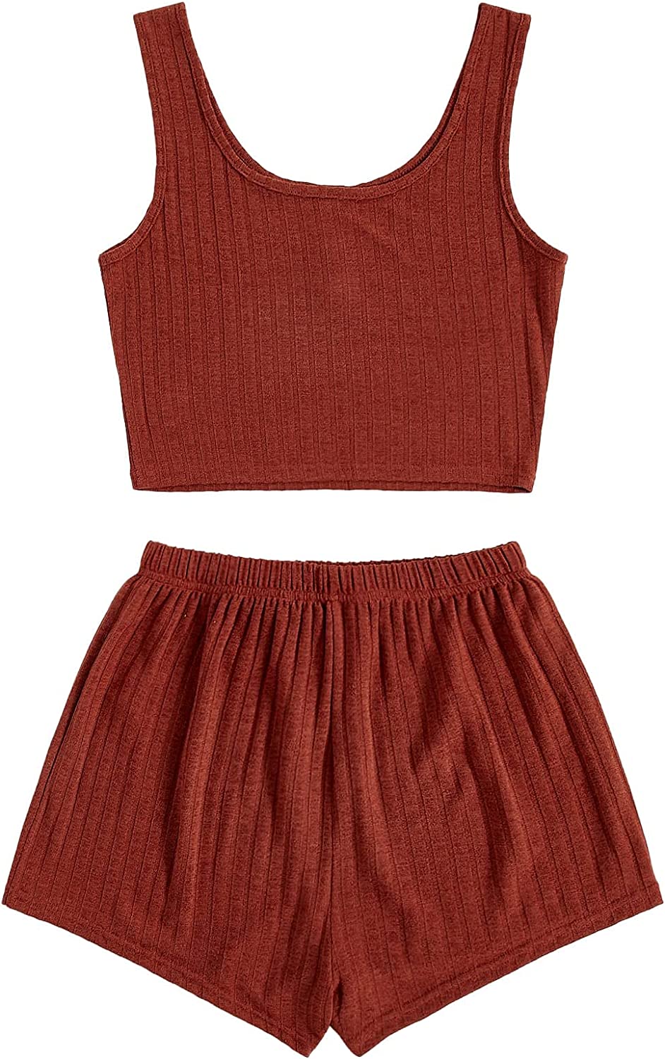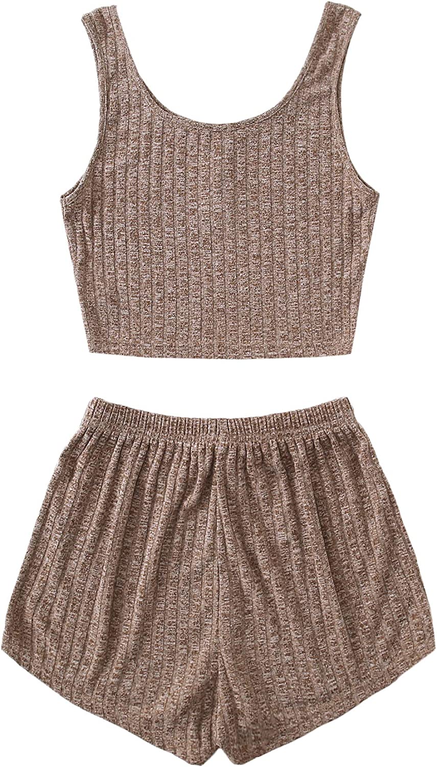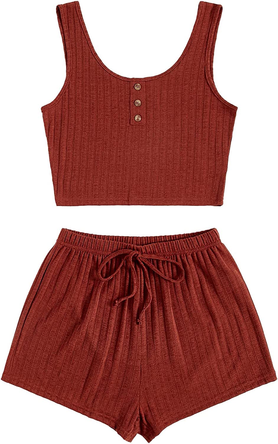 SOLY HUX Women's Button Front Ribbed Knit Tank Top and Shorts Pajama Set Sleepwear