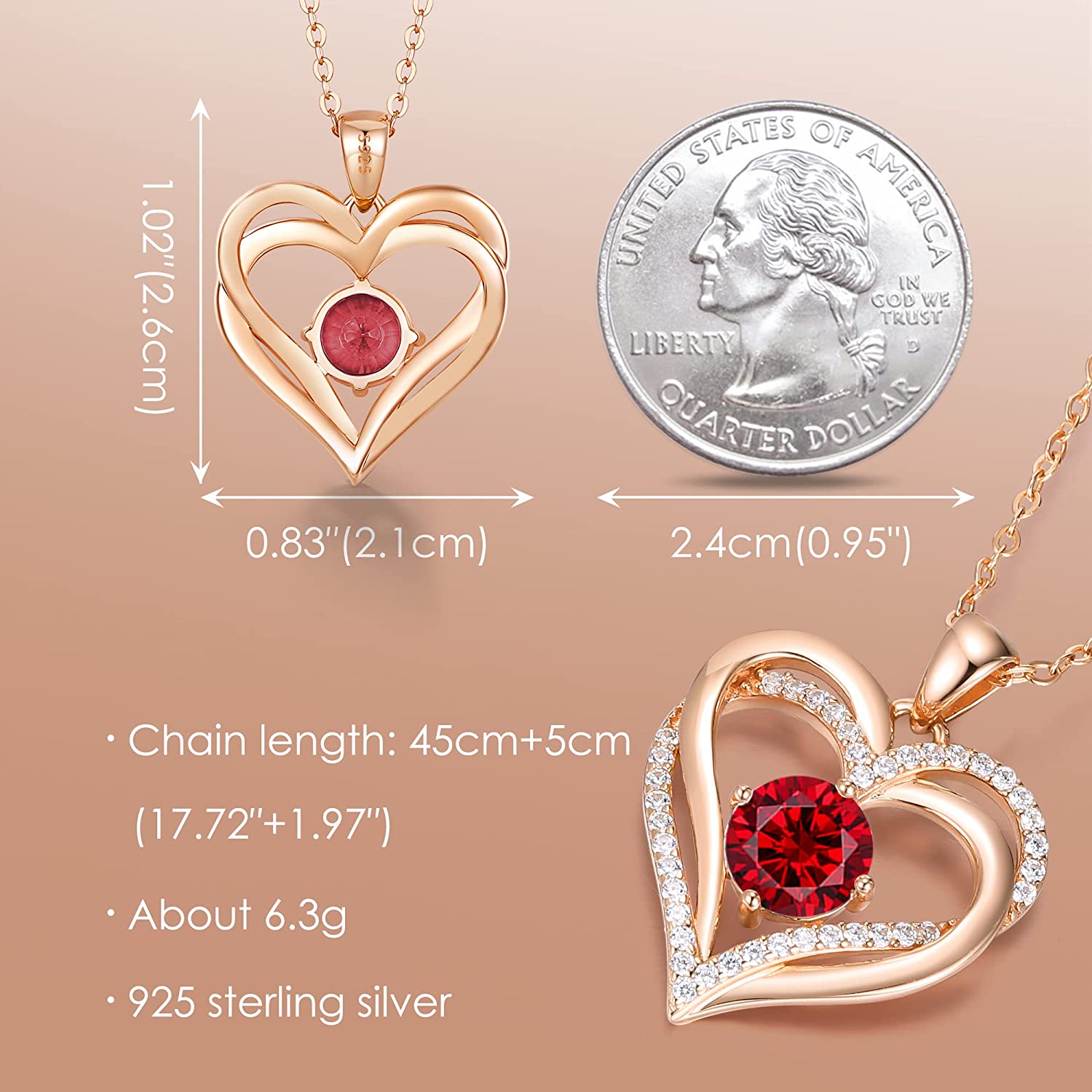 • ?【925 STERLING SILVER MATERIAL】Pendant size for the sterling silver birthstone necklace women : 0.83"ⅹ1.02" | Zircon size : 0.3"ⅹ0.3" | Chain length : 17.72"+1.97". The pendant and the chain are made of 925 STERLING SILVER with rose gold plating. These safe materials are hypoallergenic and antioxidant and won't rust, fade, corrode, tarnish or turn your skin green. GIVE YOU A BETTER PRODUCT EXPERIENCE !