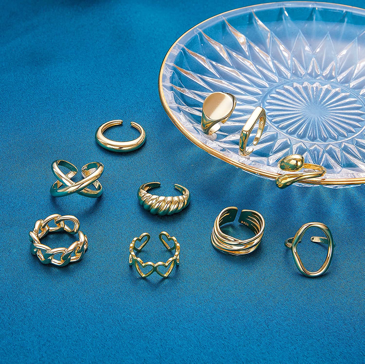 - [Adjustable Gold Thick Ring]---We provide 10 gold chunky ring styles. Their default size is size 7. They can be fine-tuned from size 6 to size 9. The opening can be adjusted to a greater degree for easy wearing.