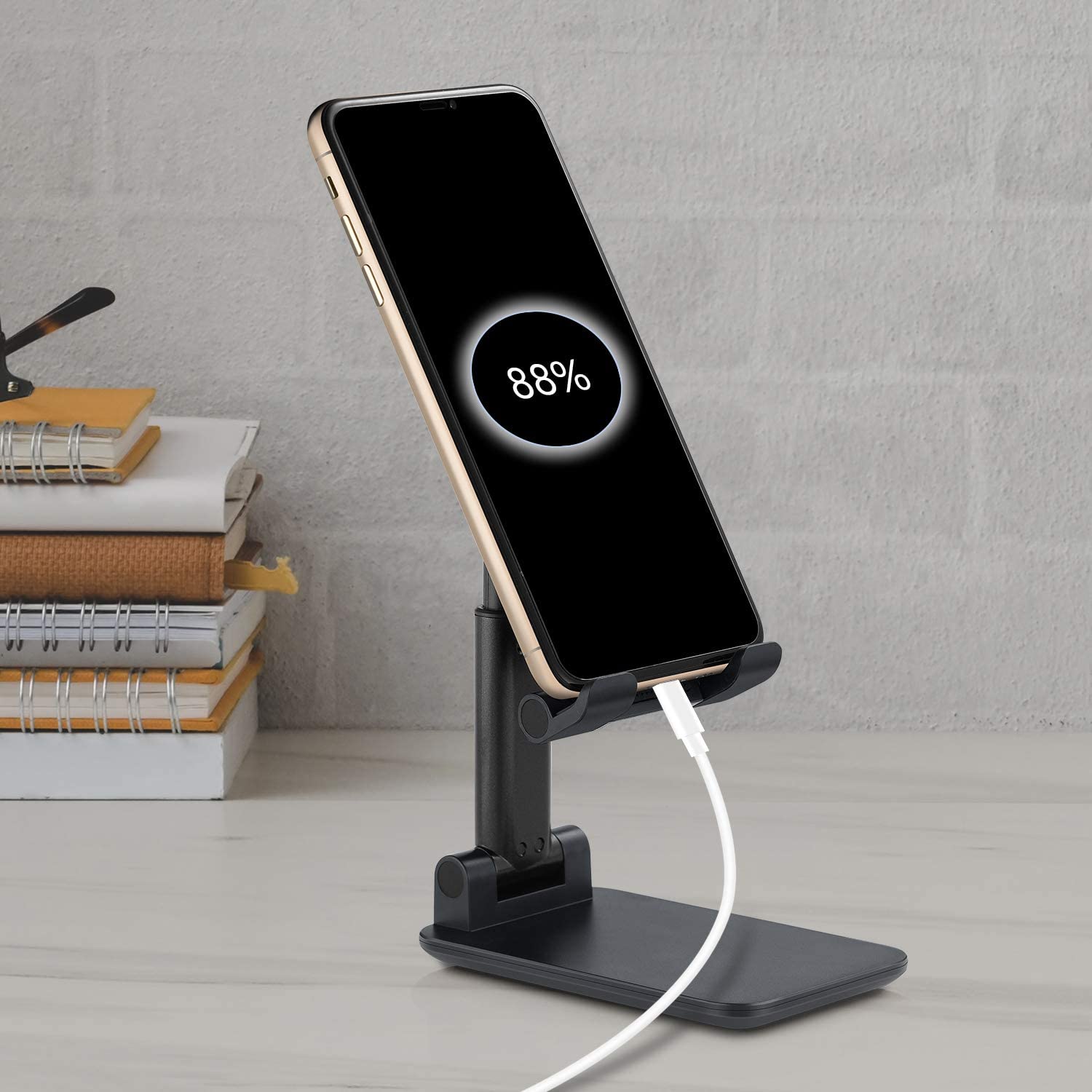 PEPPER JOBS Cell Phone Stand, Angle Height Adjustable Cell Phone Stand for Desk, Foldable Cell Phone Holder, Cradle, Dock, Tablet Stand, Case Friendly Compatible with All Mobile Phone/Kindle/Switch