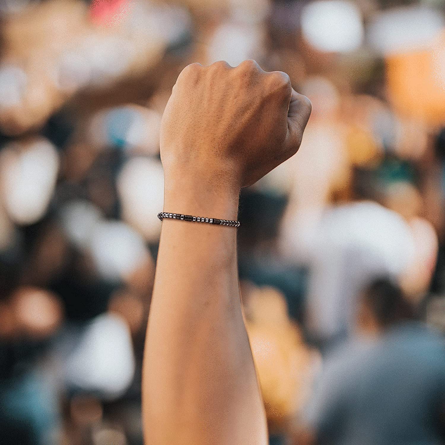 Adjustable bracelet size to fit most of women men and girls boys wrists, Bracelet material waxed nylon cord, Hematite beads, hypoallergenic 100% healthy for skin and nature.