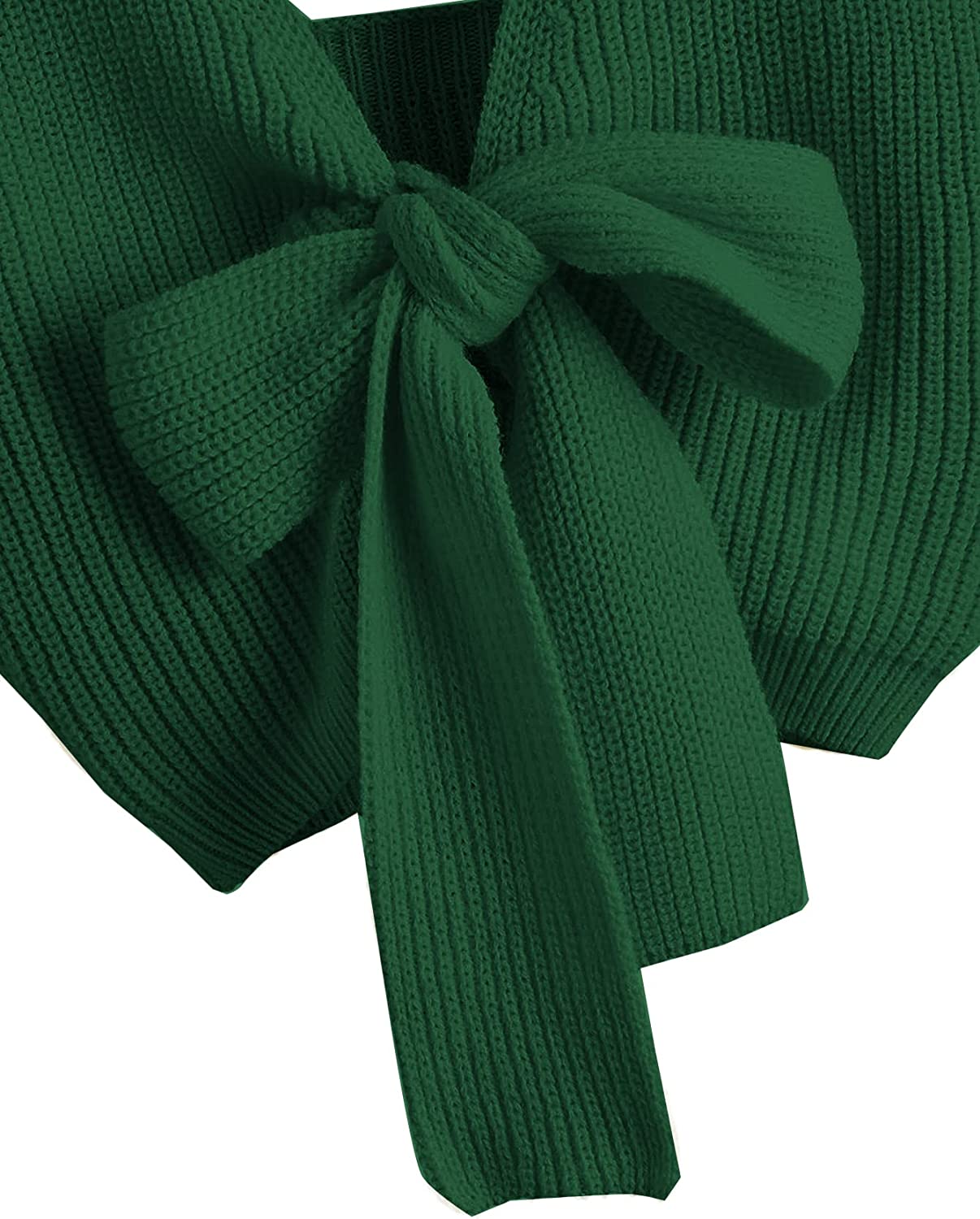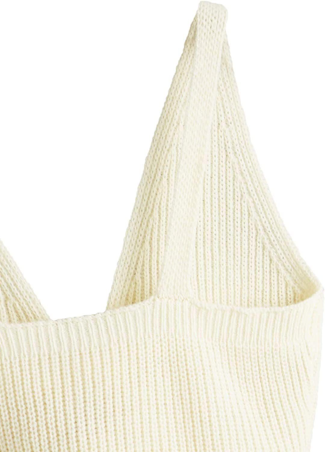 SweatyRocks Women's V Neck Tie Front Sleeveless Knit Crop Cami Tank Top