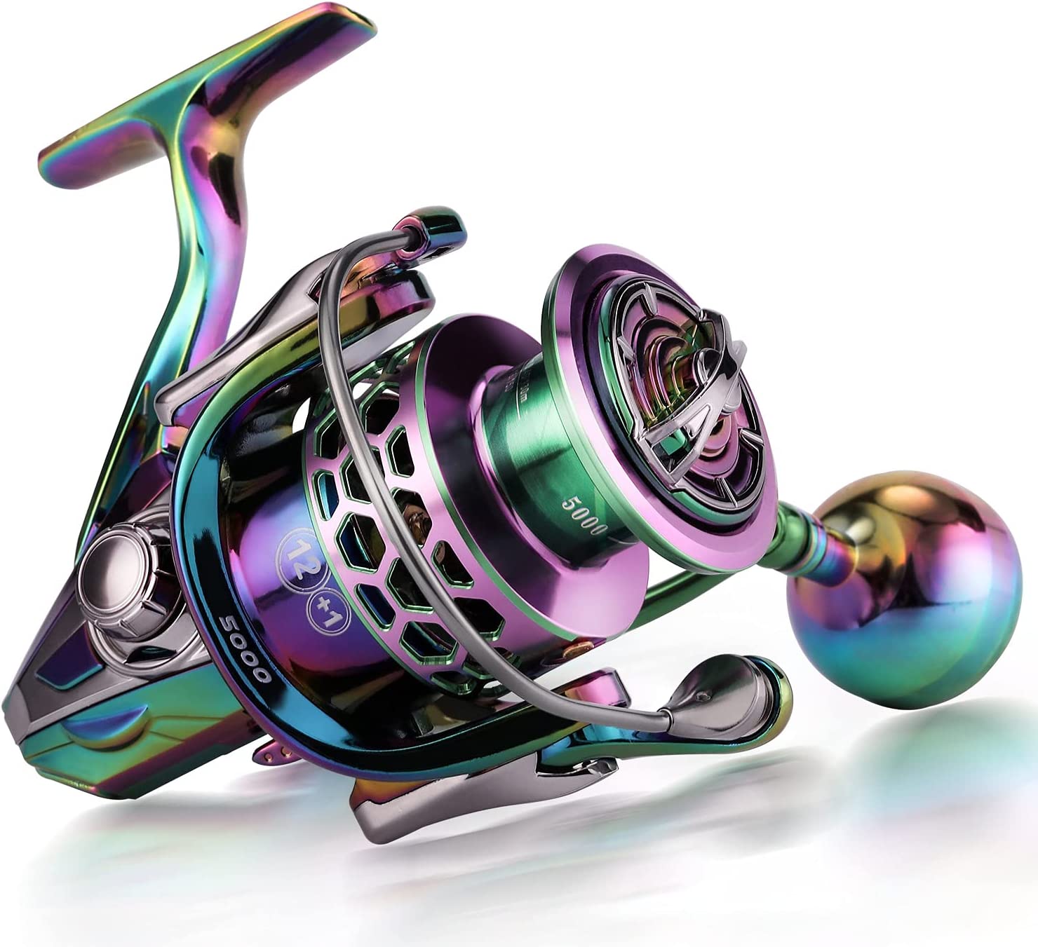 Sougayilang Fishing Reel, Colorful Aluminum Frame Spinning Reels with - 12+1 Stainless BB, Oversize Aluminum Handle for Saltwater or Freshwater Fishing