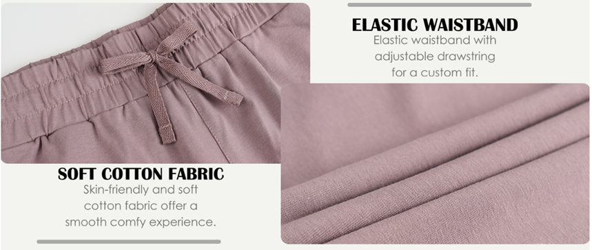 • Fabric: The cotton shorts made of skin-friendly, lightweight and soft fabric offers a low-friction, breathable and stretchy experience during lounge.