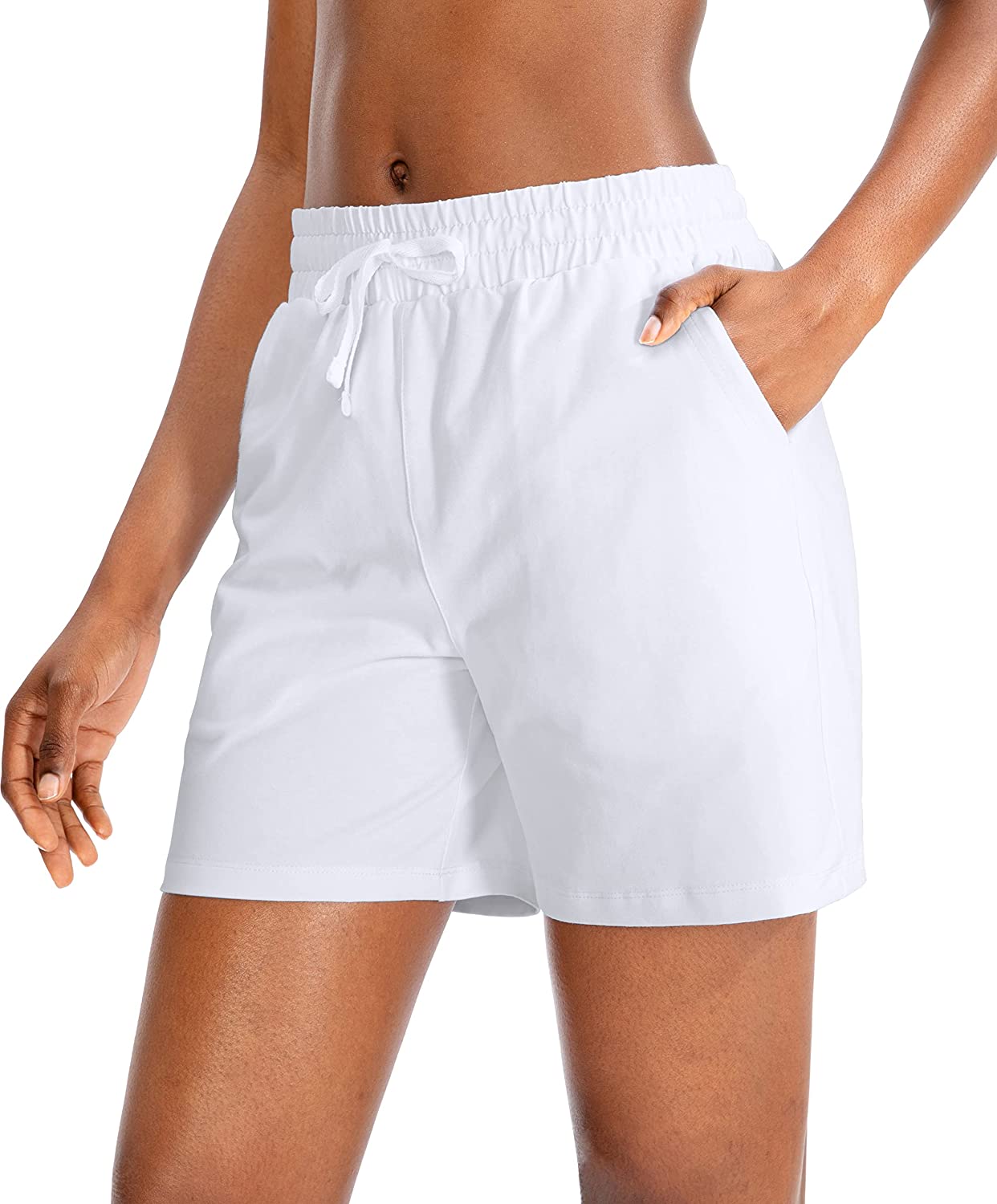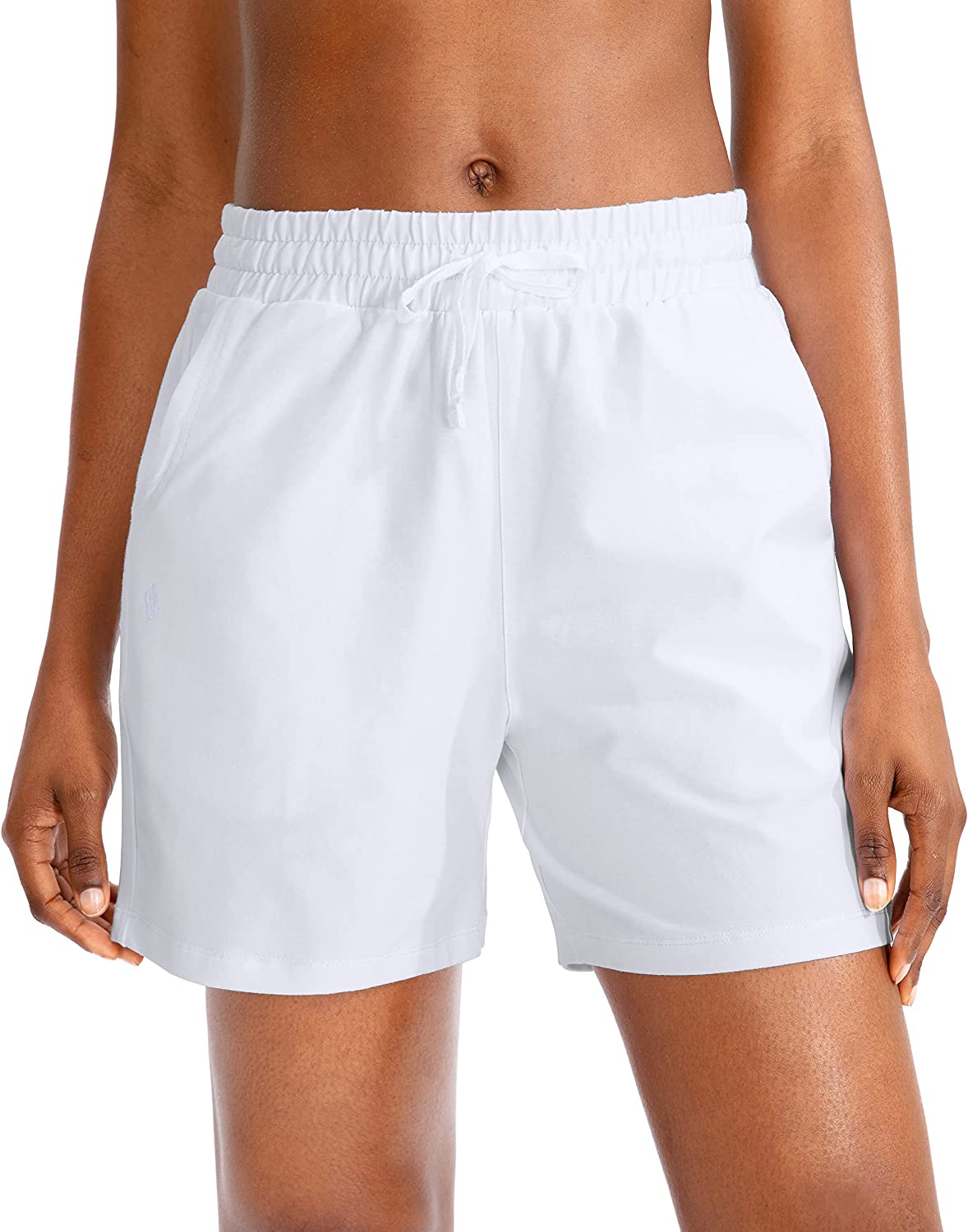 SANTINY Women's Cotton Shorts 5'' Lounge Yoga Shorts Jersey Sweat Bermuda Shorts for Women Walking Athletic with Pockets