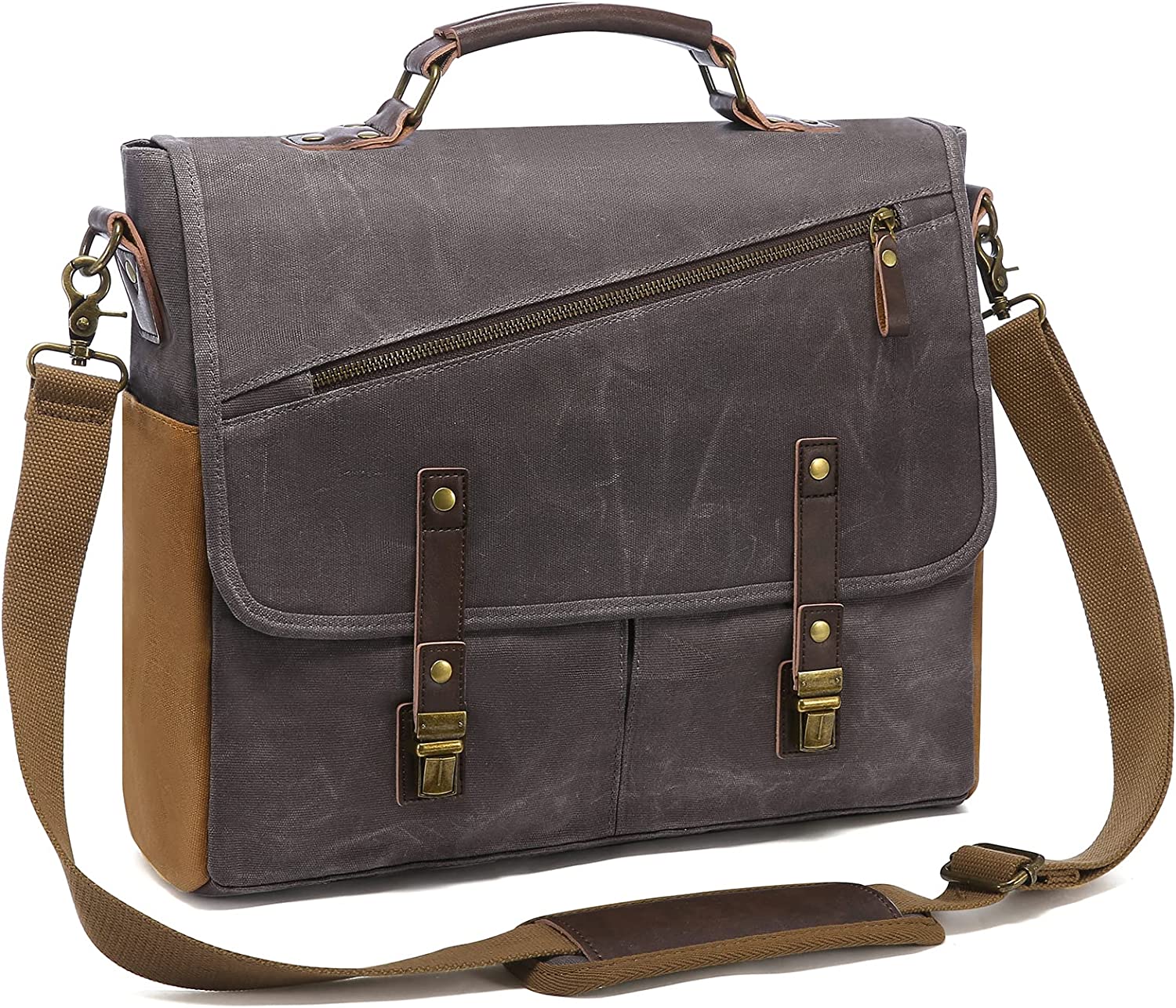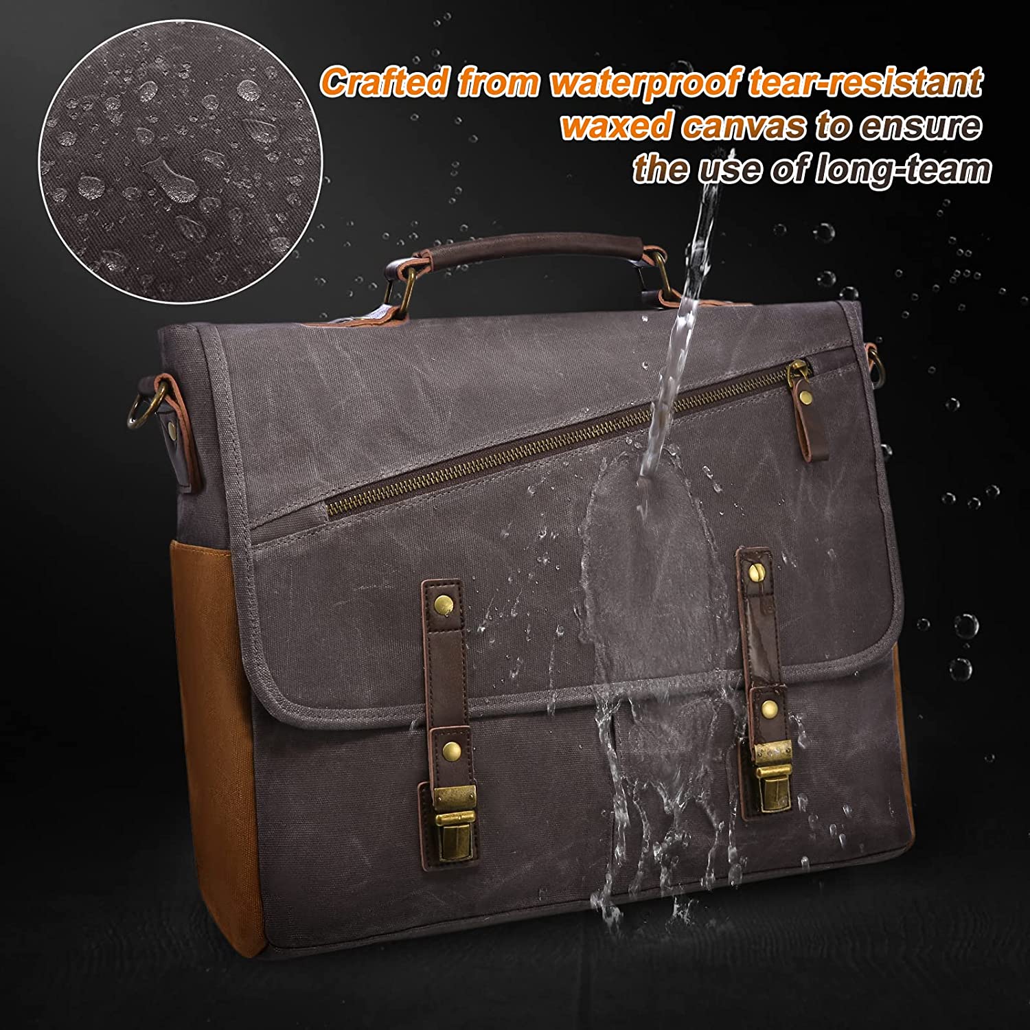 LOVEVOOK Mens Messenger Bag, 15.6 Inch Waterproof Waxed Canvas Briefcase Vintage Leather Computer Laptop Book Bag Large Satchel Shoulder Bag for Work, Travel, School
