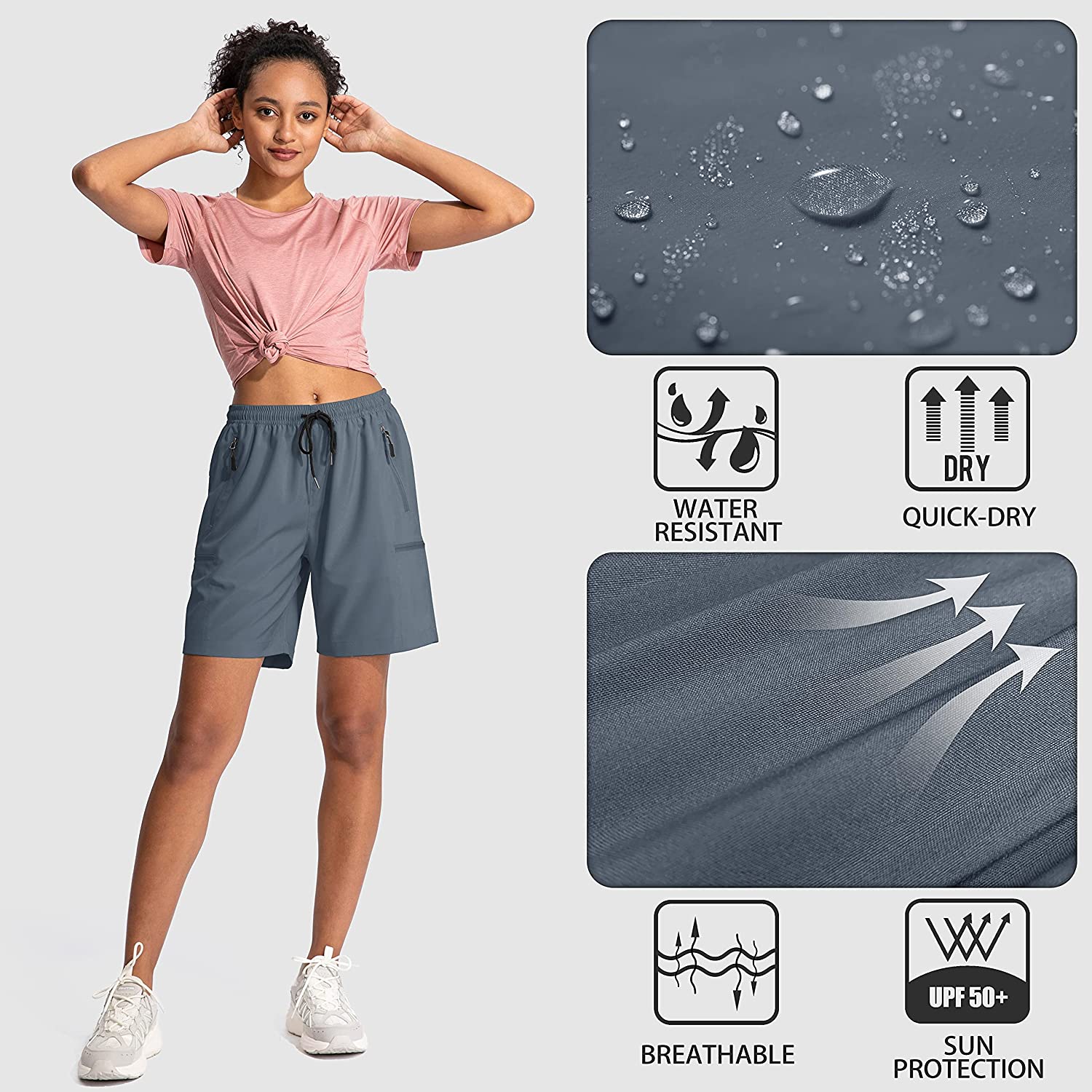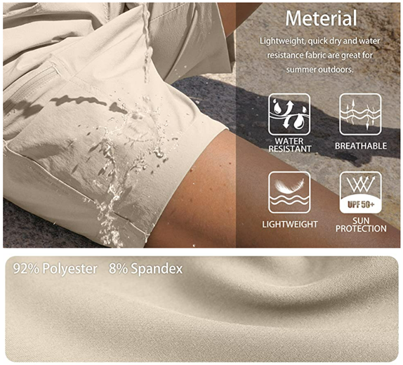 • Sun Protection: The lightweight bermuda shorts made with stretch-woven fabric which build-in UPF 50+ to provide great protection against harmful ultraviolet rays during outdoor activities.