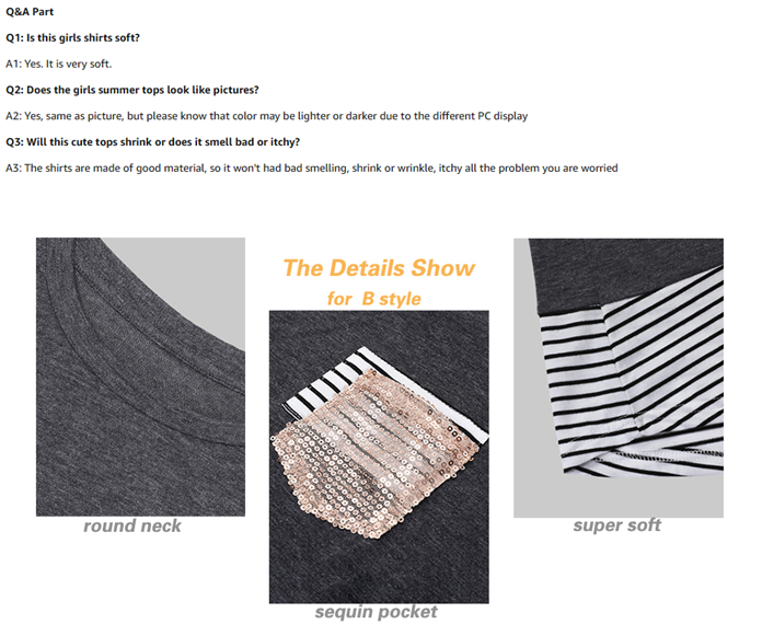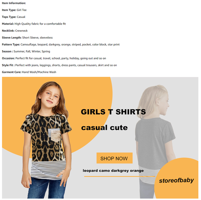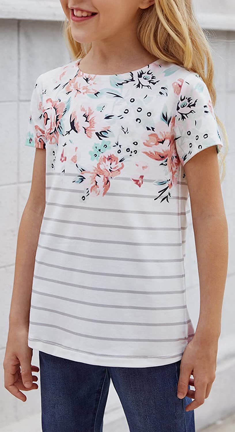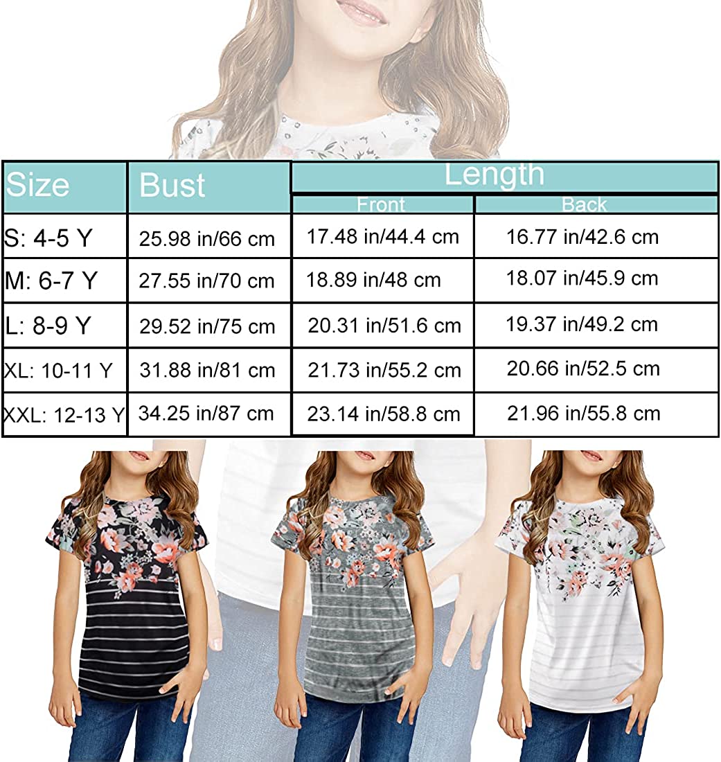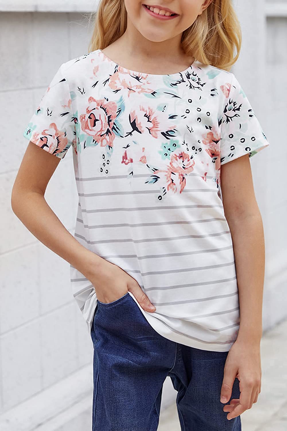 • Stylish: Our girls tops feature a casual style with round neck and short sleeve, camo, leopard print, striped, pocket and color block will give this shirts a fashion look