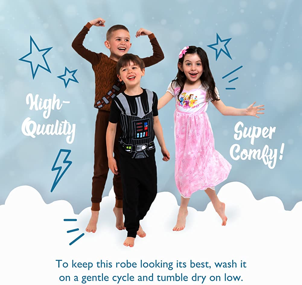 • EASY CARE: Made from 100% polyester with expert stitching for added durability, this Disney robe will withstand many nights of bath and bedtime adventures. For best results, wash it with mild detergent on a gentle cycle and tumble dry on low.