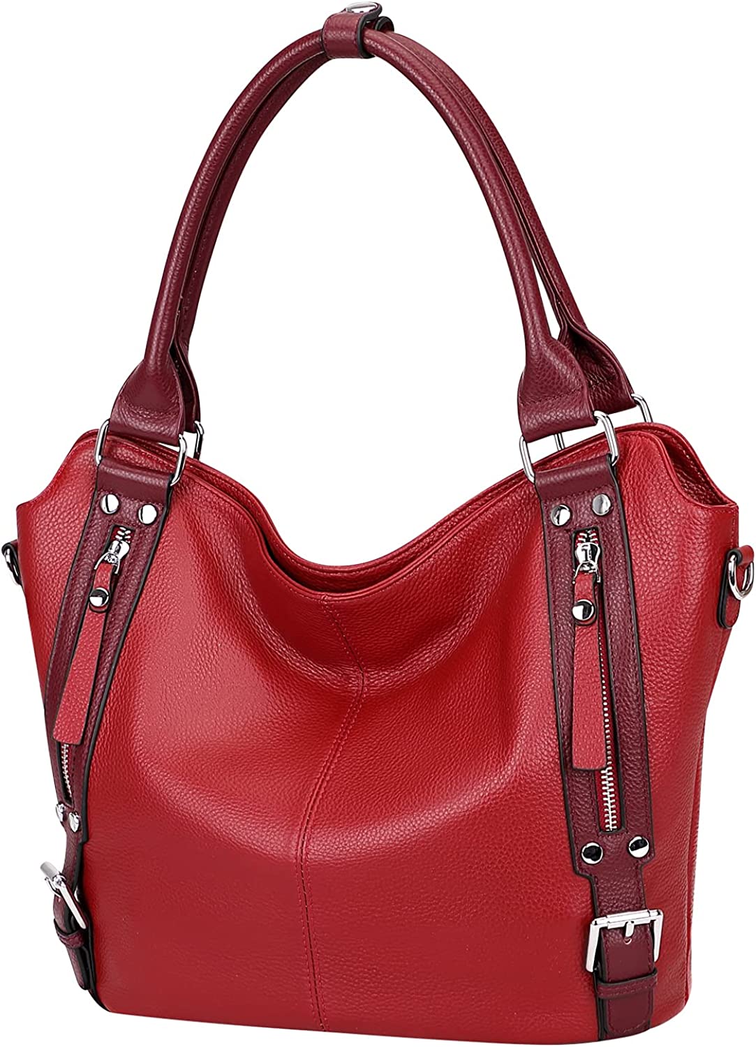 GENUINE LEATHER -- SOFT Leather large hobo tote purse made of genuine leather with pebble texture; The silver handware is high quality and durable. Bottom with 4 rivets for protecting your handbags bottom away from abrasion.
