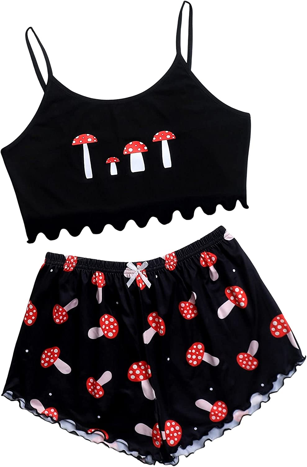 SheIn Women's Cute Cartoon Print Cami Top and Shorts Pajama Set