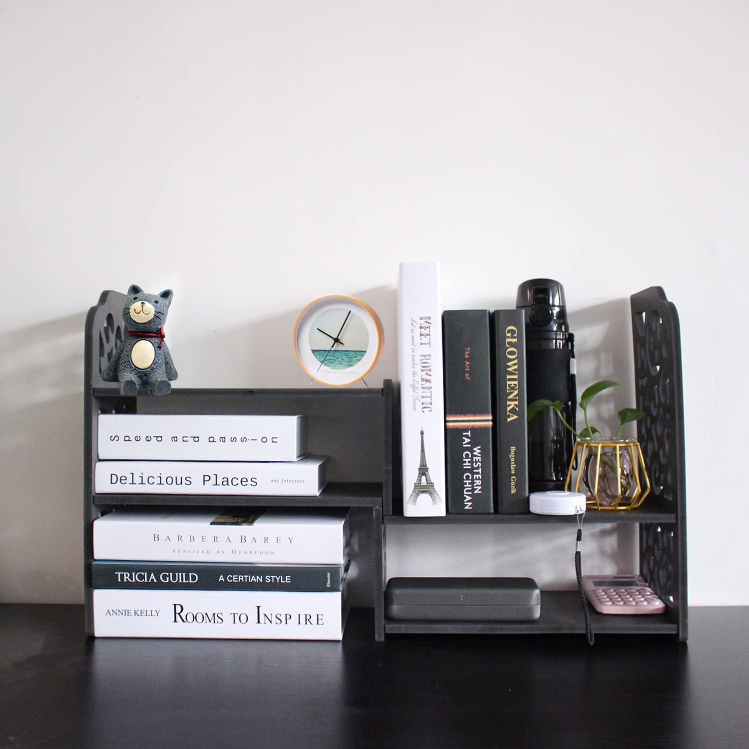 ?Give your books a home: Is there nowhere to put your books, after a while, the book will fall apart, then your books become crumpled, with this small desktop bookshelf, your books will be able to maintain a new look