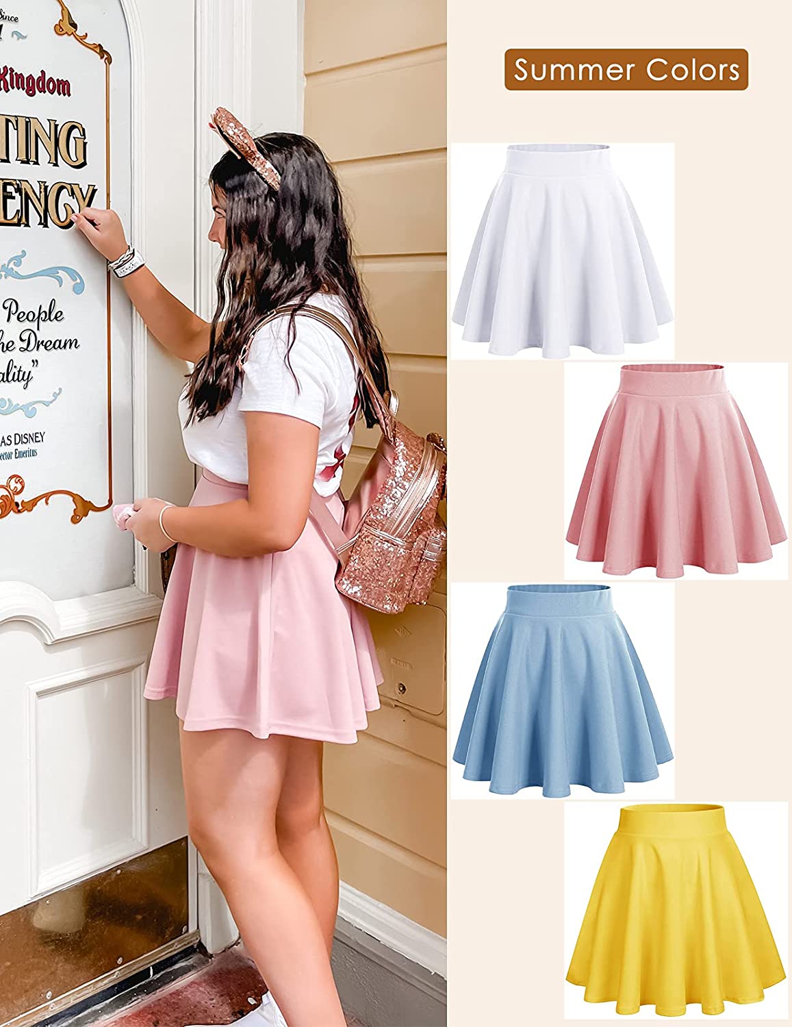 DRESSTELLS Skirt for Women Mini Skirts Versatile A-line Basic Stretchy Flared Skater Skirt