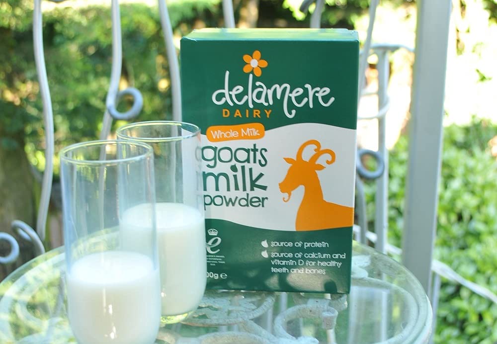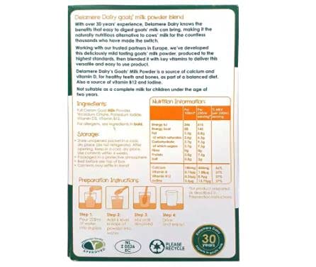 Delamere Dairy Goats Milk Powder 400G - Delamere Dairy's Goats' Milk Powder is a convenient whole goats' milk substitute. in hot drinks, on cereal, in recipes, baking and sauces, and simply as a drink