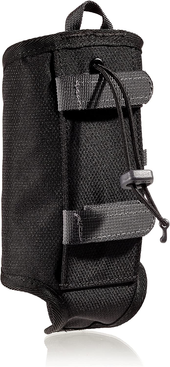 Lightweight bottle holder, which can be mounted on a backpack hip belt or shoulder strap using hook and loop fastener or an open compartment. Can be adjusted to the size of the bottle. Suitable for max. 1-liter bottles.