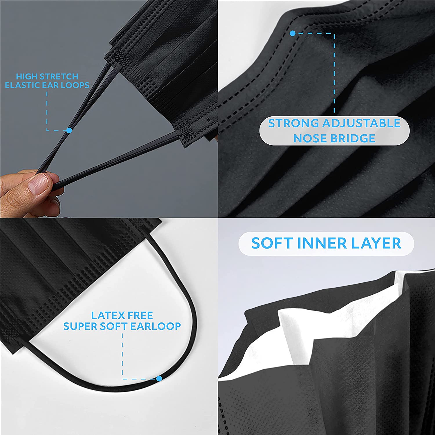 MagiCare Made in USA Masks - Black Face Masks Disposable - Premium 3 Ply Face Mask for Adults - Comfortable, Soft, Breathable - Black Face Mask American Made - 50ct Box MagiCaredeals with reliable, high-quality personal protection products. We are a Wholesaler, and Distributor in the USA of 3ply face masks, Safety Kit, Hand Gloves, Sanitizers, disinfectants, and PPE. ð½ MADE IN USA:Proudly manufactured in a state-of-the-art facility in Ontario, California. MagiCare masks are manufactured under strict quality control standards in a state-of-the-art cleanroom facility. ð· BREATHABLE & COMFORTABLE:Made from Highest Quality Material that is Extra Soft & Breathable. Wear for long periods of time without feeling suffocated by a damp, itchy fabric. Our mask's inner layer permits air and moisture to pass through, allowing for Maximum Breathability. MagiCare black disposable face masks are the Most Breathable Face Mask you'll Find! ð¡ï¸ 3 LAYER PROTECTION:Three Effective Filter Layers made of soft non-woven material for comfort and a High Filtration melt is blown middle layer for maximum 3ply protection. The inner layer is designed for comfort and to keep things Cool and Moisture Free! ð SOFT EARLOOPS:Ear Loops won't break easily VS other cheap disposable masks. Ear Loops are highly stretchable, non-latex soft elastic materials that is made to last. These USA-made masks are suitable for Men and Women and designed to fit Adults, Small or Large Faces. ðª STRONG/ BENDABLE NOSE BRIDGE:Nose Piece is a stronger, more dependable nose wire to hold shape longer and contours the shape of your face for Maximum Protection  Our some relevant products: Kids Disposable Face Masks