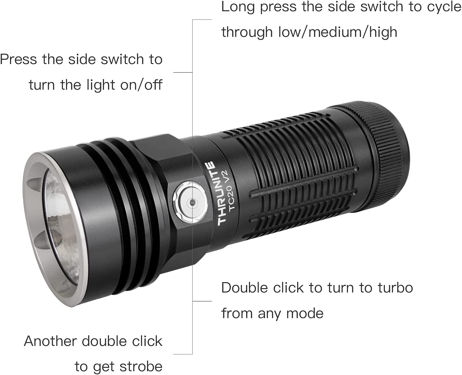 | Included Components | Holster *1, TC20 V2 flashlight *1, Rechargeable battery *1, Lanyard *1, USB Charging Cord *1 |