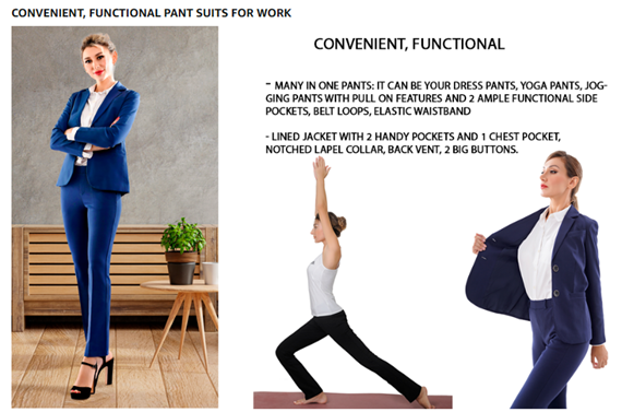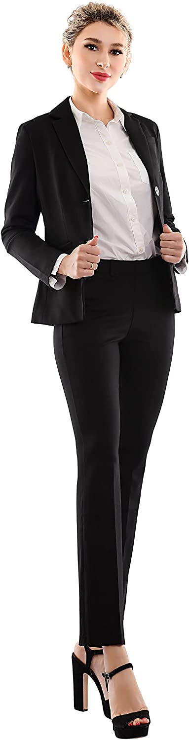 • MOST COMFORTABLE PANT SUITS SET you'll ever wear to work: - Made of Durable, Ultra-comfy, 4-way stretch ponte fabric. You can look professional in office while performing hardest yoga postures in Lunch time.