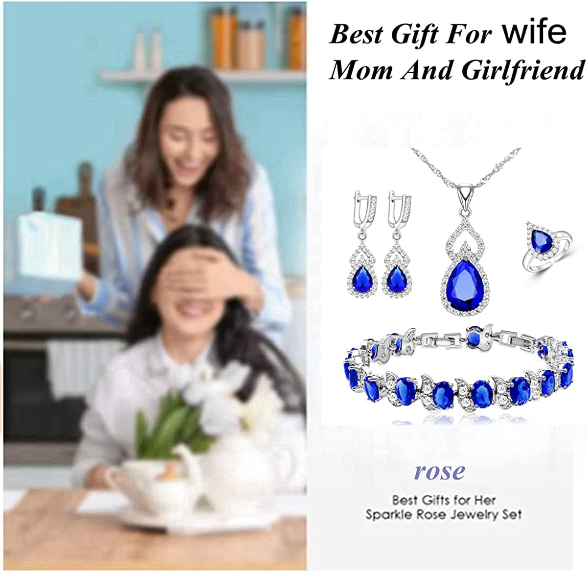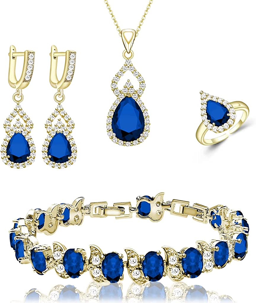 ❤High Quality Material:❤ This Women's Jewellery Set is made of White Gold Plated ,Main stone is Created Blue Sapphire ,Side stone is White cubic zirconia. High Polished. Nickel-free, Hypoallergenic and Shiny Forever. Will not change the color, health and environmental protection.