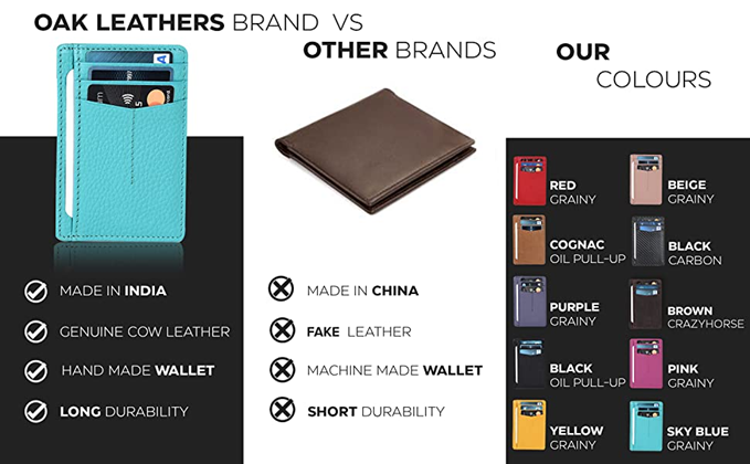 - ★REAL LEATHER : Oak Leathers wallet are MADE IN INDIA products and that comes in various Leather Quality. Oak Leathers manufactures only REAL authentic Leather Porducts which is tanned in India. The Tanning process includes Vegetable Tanning where we use extracts of Oak Bark to make the Leather Softer and rich in Looks.