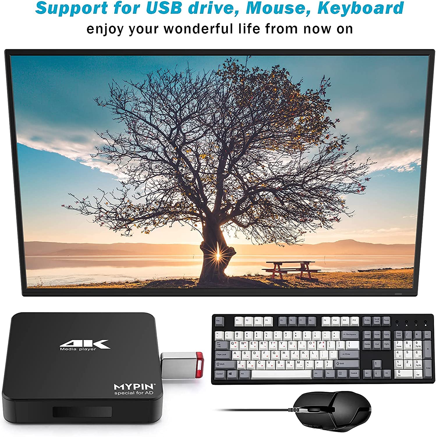 - 【Powerful Compatibility & Internal 11G memory】-- It can play from micro SD card, USB flash drive up to 256GB and HDD up to 8TB; including FAT32, exFAT and NTFS. The device has a built-in 11G memory, which can store your favorite movies or photos. Dual USB ports for connecting two devices, Support mouse and keyboard, you can remotely control by mouse, it helps to make your TV smarter by adding the ability to play videos, music, and photo slideshows