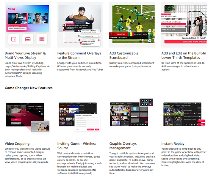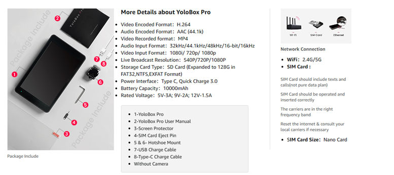 - 【All in One】 YoloBox Pro is a full HD live broadcast device integrating encoder, switcher, monitor and recorder, with built-in battery and native support for 4G LTE, WiFi, Ethernet. Perfect for Worship, Weddings/Funerals, Sport, Events, Corporate, Education, Retail Business and Much More.