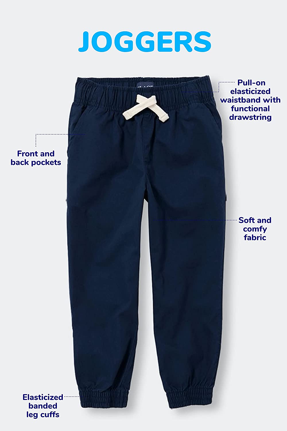 • MULTIPACK — 2-pack of pull on jogger pants features front side slant pockets, back patch pockets, elasticized banded leg cuffs and inner adjustable waist tabs for a custom fit