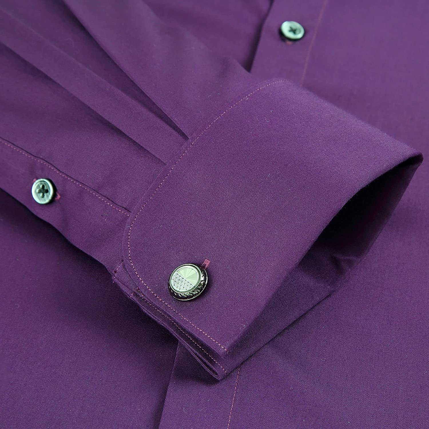 Gollnwe Men's Slim Fit French Cuff Stretch Bamboo Solid Dress Shirt