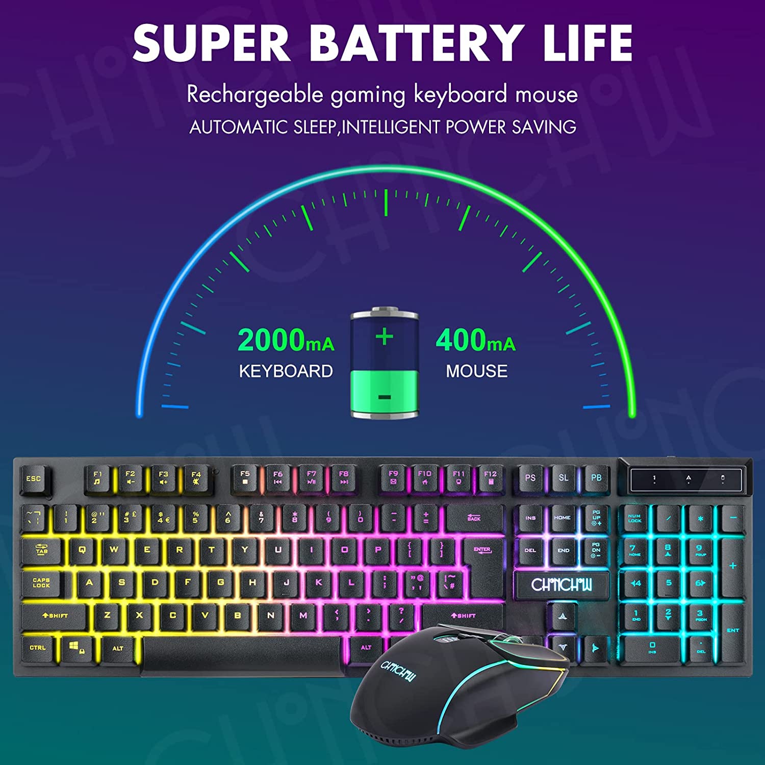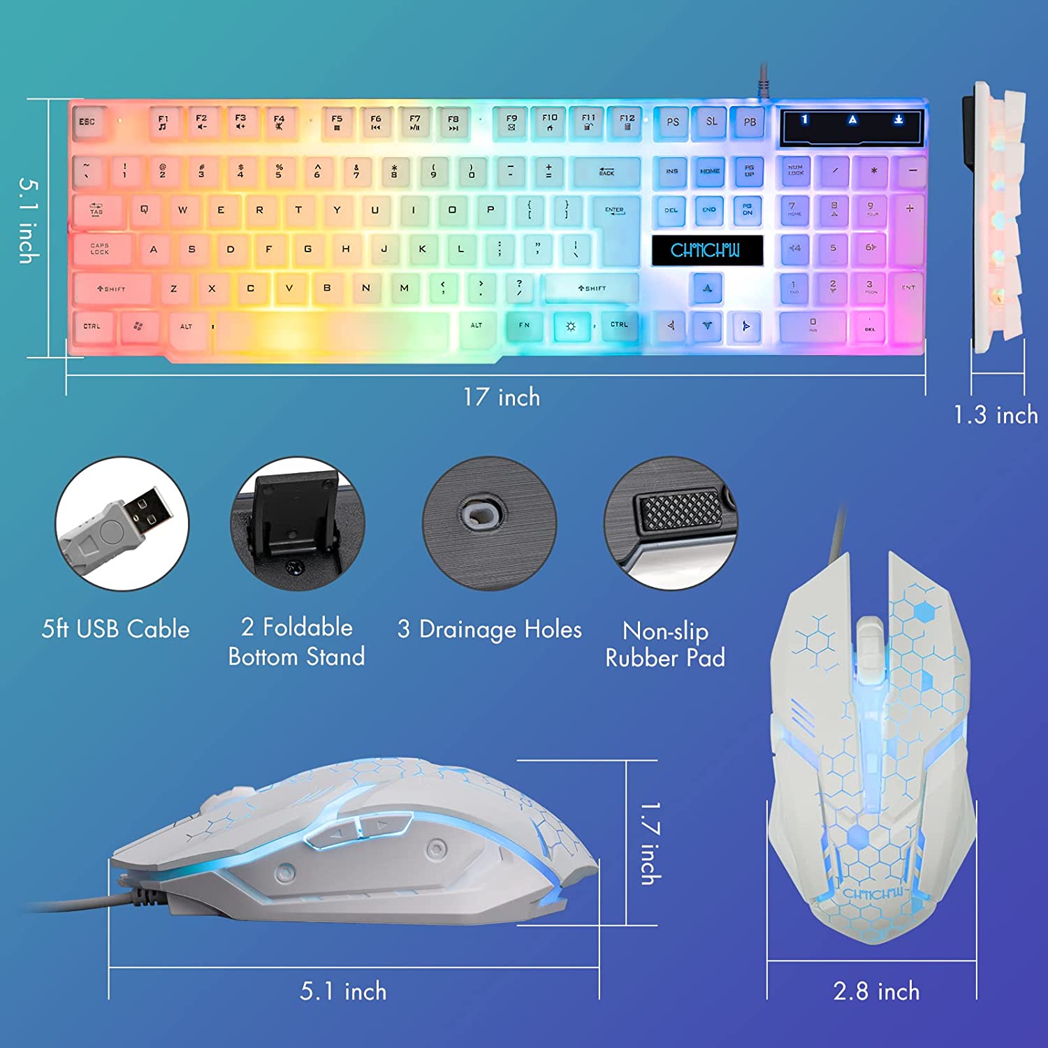 CHONCHOW LED Keyboard and Mouse Combo, 104 Keys Rainbow Backlit Keyboard and 7 Color RGB Mouse, White Gaming Keyboard and Mouse Combo for PC Laptop Xbox PS4 Gamers and Work
