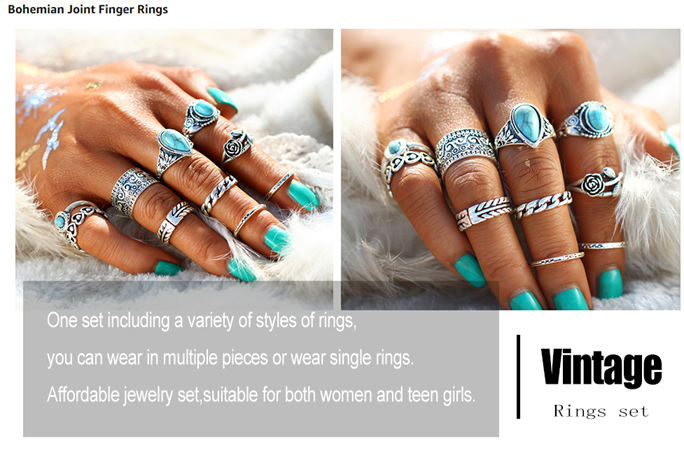 ❤Material❤ These stacked rings use alloy materials, silver plated, high polished, it's comfortable to wear, don't worry about harm your fingers. With Bohemian style, vintage design, crystal, fashion carved, it is worth buying. They will make your fingers look more elongate, more beautiful. The rings of various designs can be randomly combined. It makes you very personal.