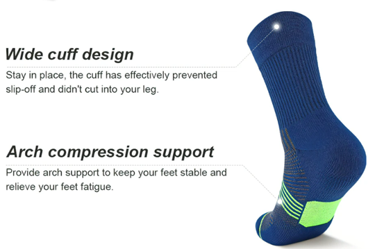 • TARGETED COMPRESSION & COMFORT: Compression helps improve blood flow and preventing cramping, fatigue, swelling, and helps in muscle recovery. The stretchy, extra-wide, and non-slip cuff keep your running socks in place and never leave terrible marks on your legs. A great gift for you and your family.