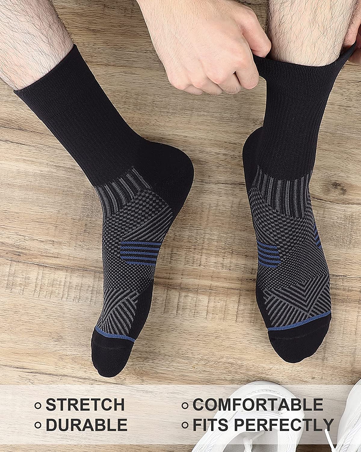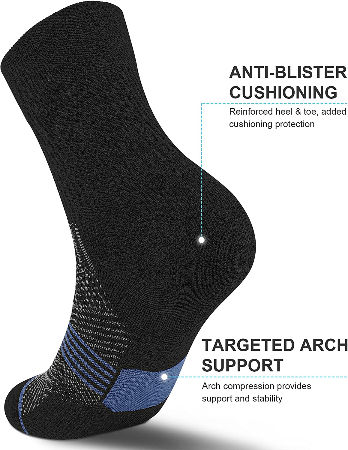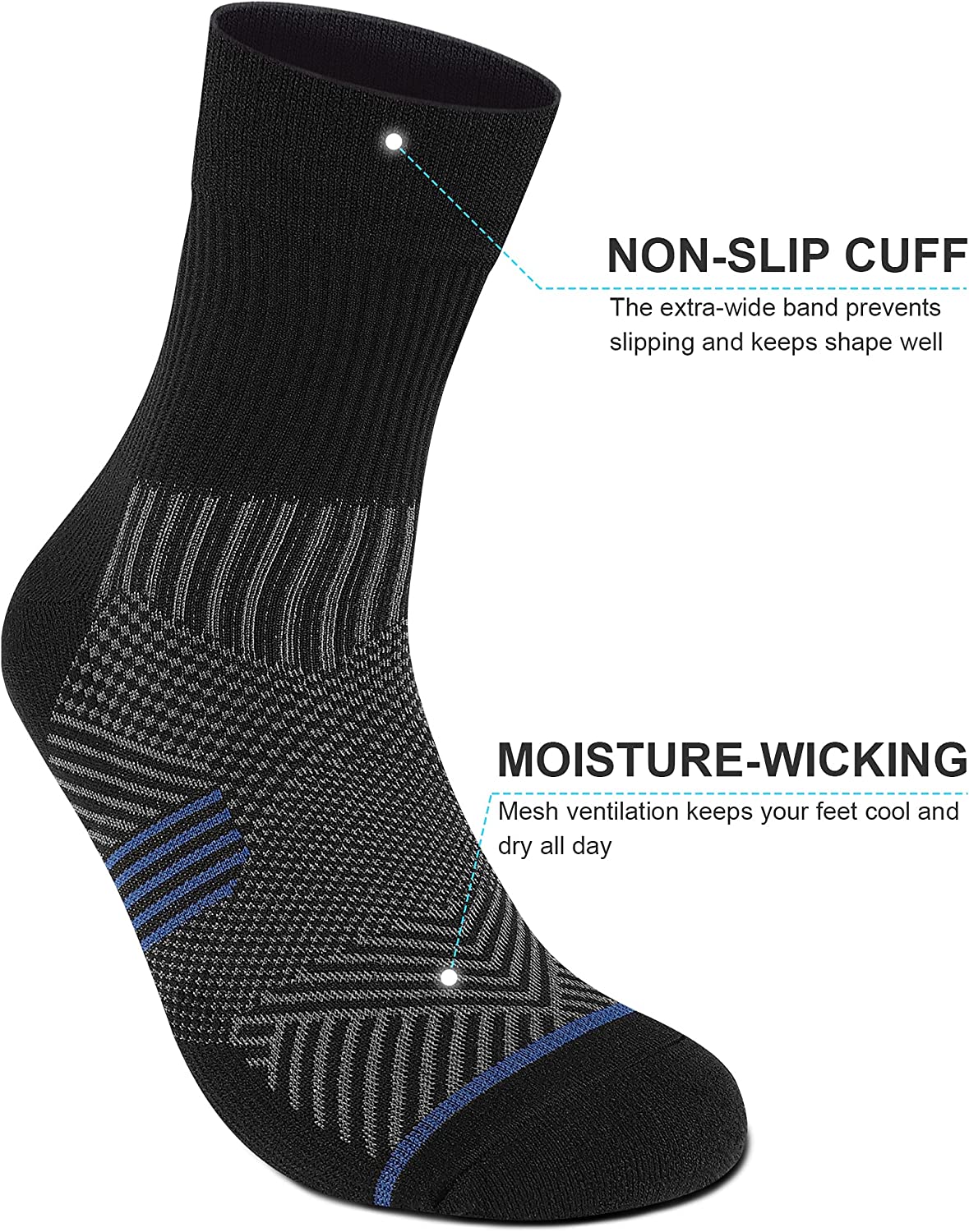 • ARCH SUPPORT & BREATHABLE: Targeted arch compression keeps your arch stable and secure, preventing sock movement and reducing injury during exercise. Our compression socks for men increase air permeability through mesh knitting technology, helping your feet keep cool and breathable all day long.