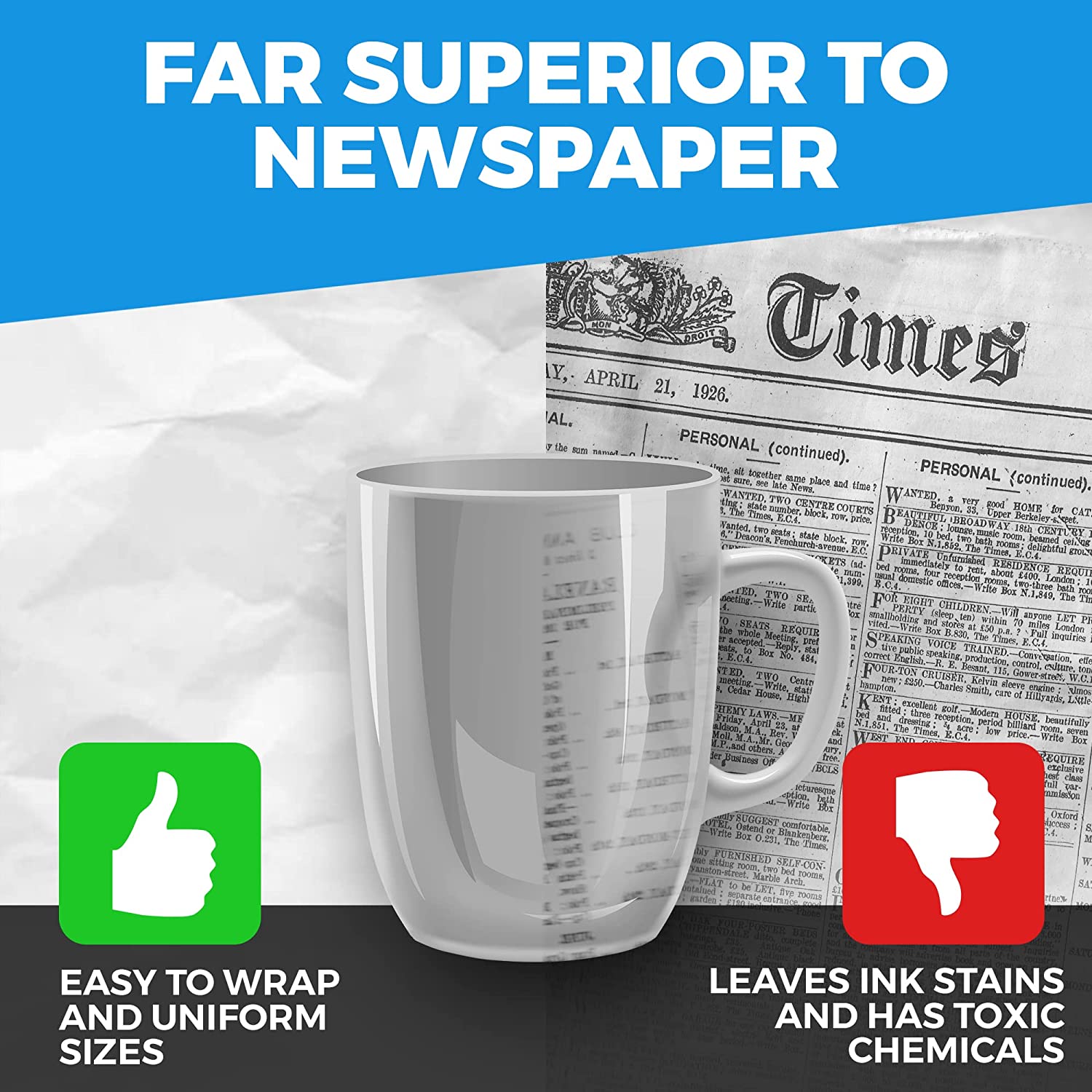 Perfect Size Blank Newspaper at 27" x 17" ideal for almost any sized breakable item