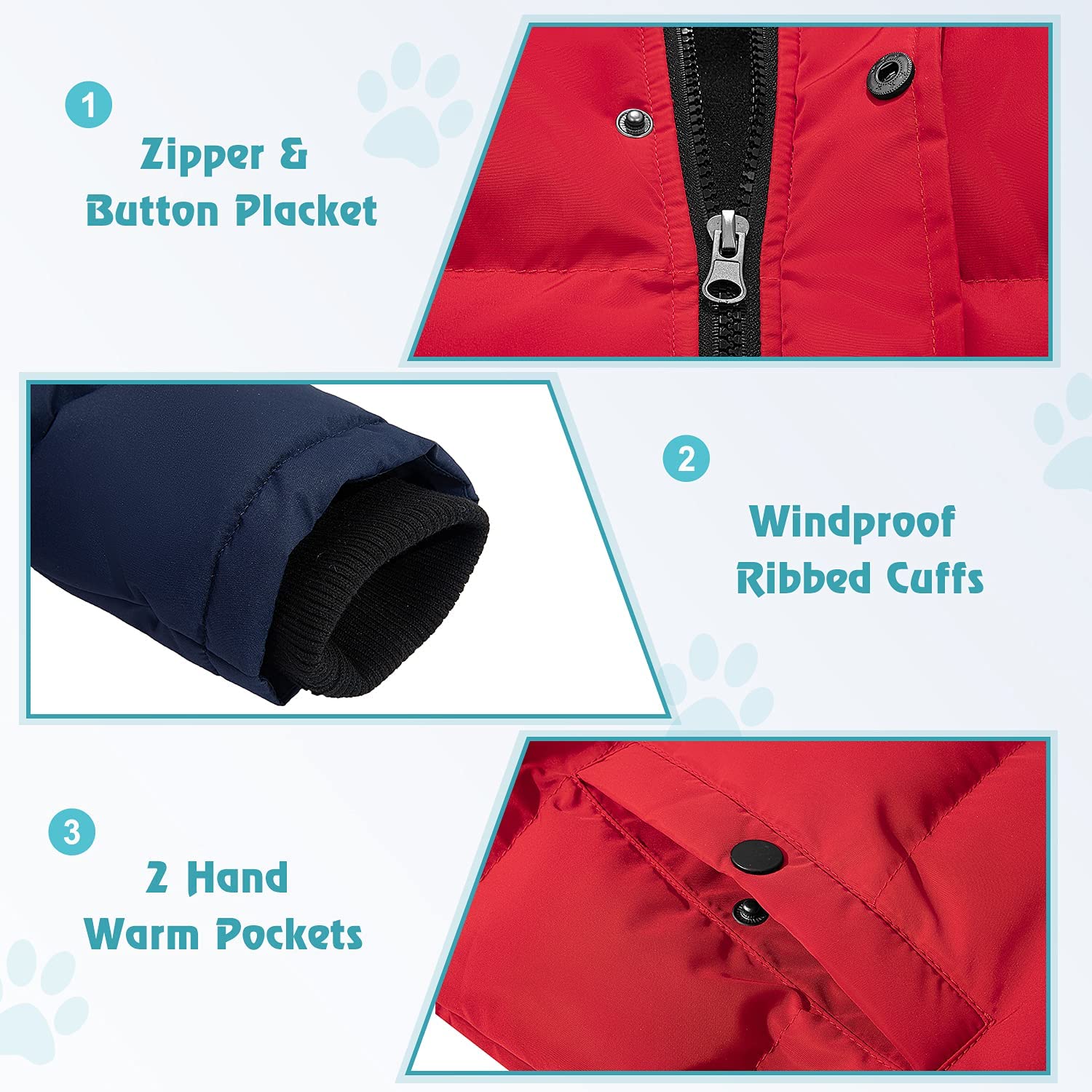 • Windproof Parka: (1) Elastic ribbed cuffs and removable fleece hood to seal in warmth in cold days. (2) Stand collar, a full zipper with button placket helps lock temperature.