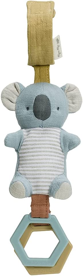 Itzy Ritzy’s Bitzy Bespoke Jingle Travel Toy can easily attach to car seats, strollers and activity gyms, making it perfect for on-the-go use