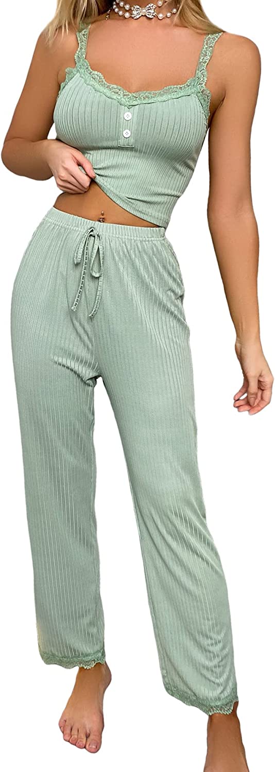 SheIn Women's 2 Piece Sleeveless Button Front Crop Tank Tops and Plaid Pants Pajama Lounge Set