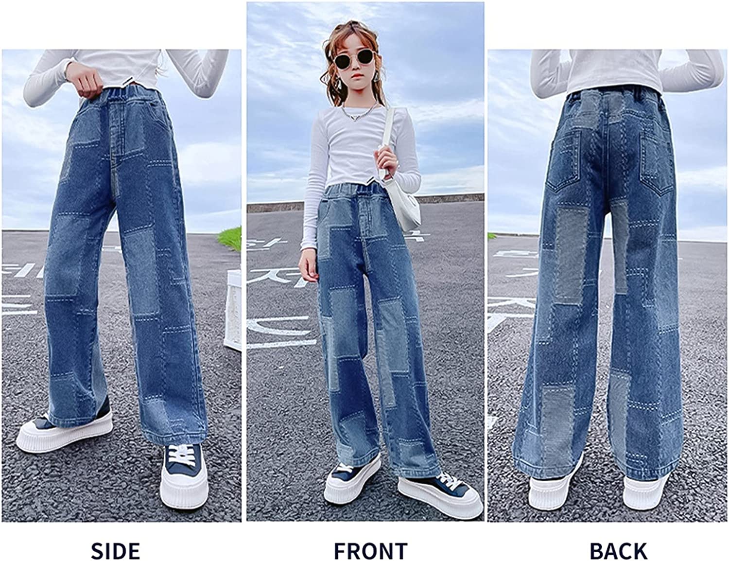 Rolanko Girls Jeans Denim Elastic Wasit Wide Leg Baggy Pants Kids Clothes 4-14 Years