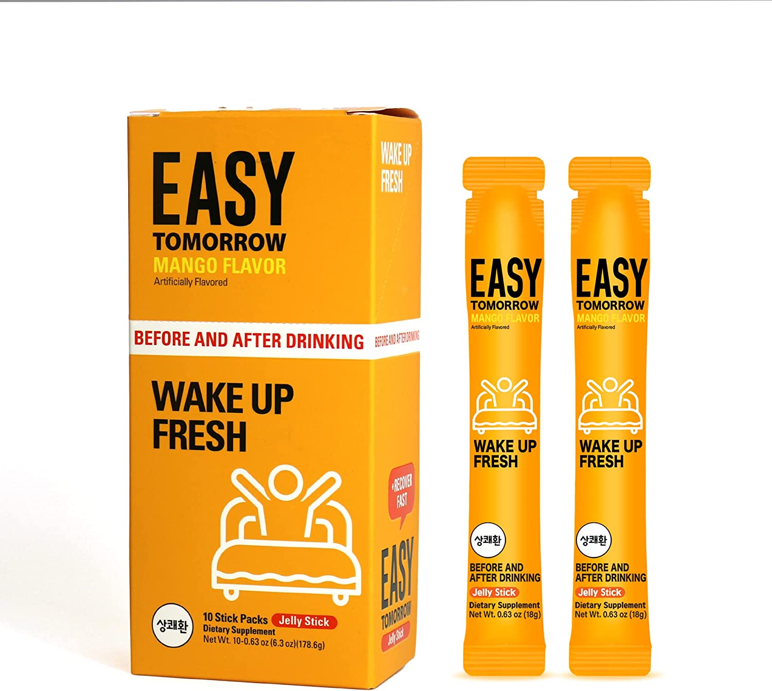 Easy Tomorrow Jelly Stick Before/After Drink Alcohol, After Party Recovery & Relief for Great Night & Better Morning, Party Vacation Aid, Liver Cleanse Detox, Mango Flavored, 상쾌환, 20 Packets