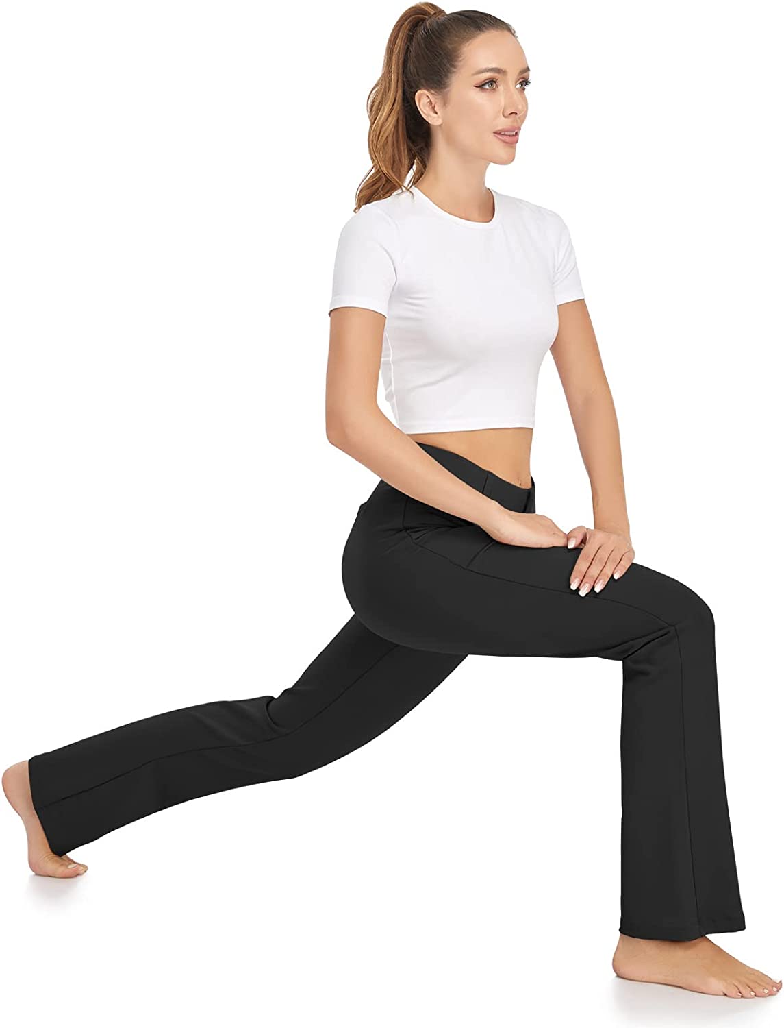 BOOTLEG & BUTTON FLY STYLE: Our bootcut yoga dress pants have zipper fly with button closure, feature both high-waist and tummy control, suitable for each body type. Slight flare at cuffs design to create a leg-lengthening silhouette, giving a streamlined look.