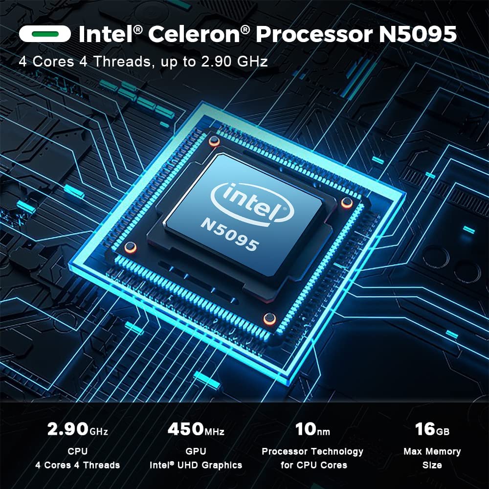 • ?【Intel 11th Generation N5095 Processors】The Mini PC W11 Pro comes with Intel 11th Generation N5095 Processors(4Core, up to 2.9GHz) 16G DDR4 500G M.2 SATA3 SSD 2280. Excellent CPU Performance can easily control various complex work procedures. Energy-saving design, perfect for office work, streaming video, web browsing, distance learning, and home entertainment.