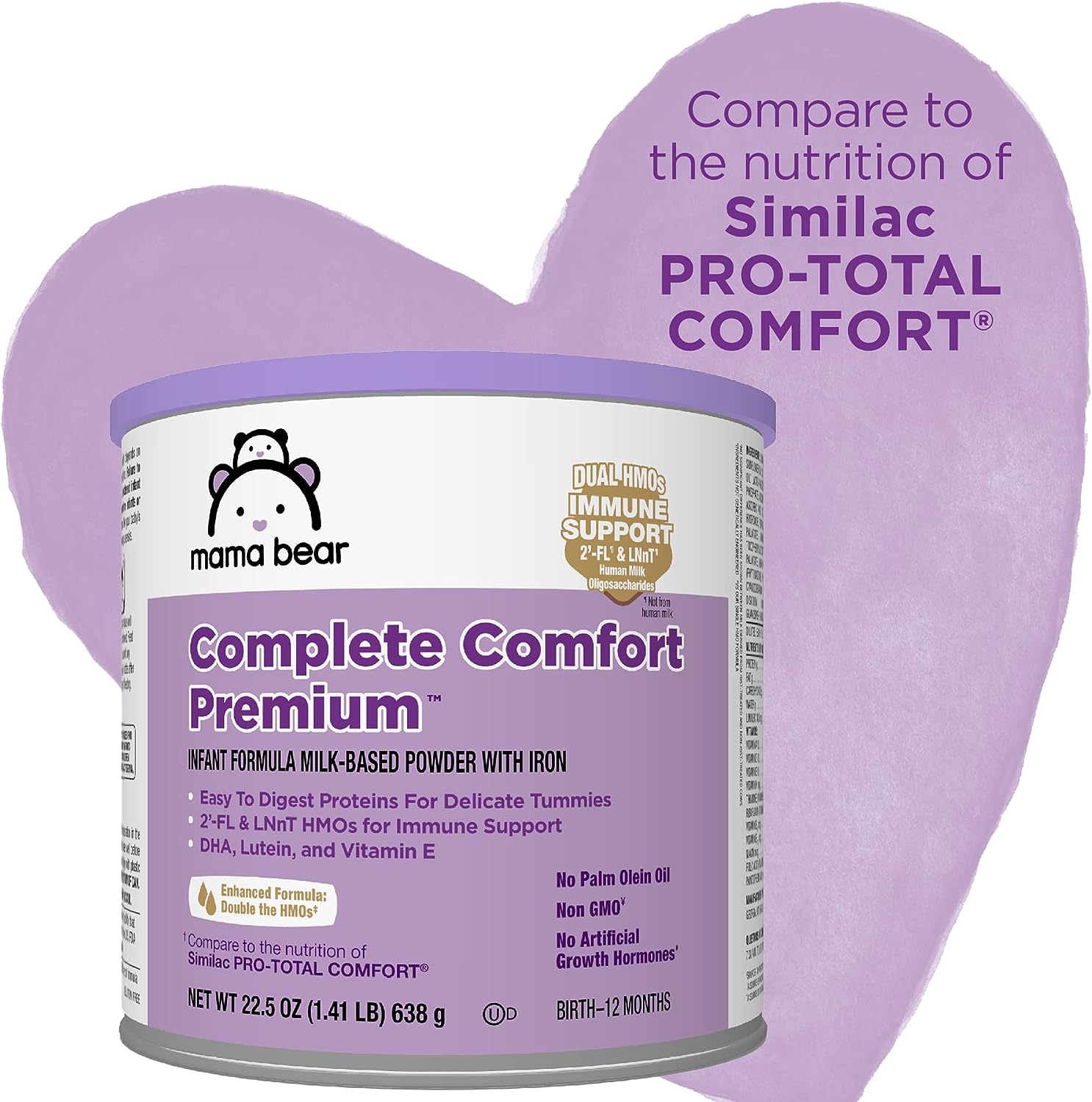 LESS GAS, LESS FUSSY: Babies deserve to be comfortable; gas & crying isn't comfortable. Consider a switch to Mama Bear Complete Comfort Baby Formula with Iron and 2'-FL HMO. Compare to Similac Pro-Total Comfort.*