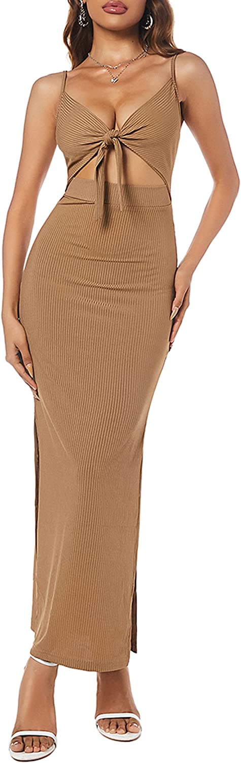 ZAFUL Casual Maxi Dress for Women Split Sexy Cocktail Dress Cut Out Bodycon Dress Spaghetti Strap Slinky Party Club Dress
