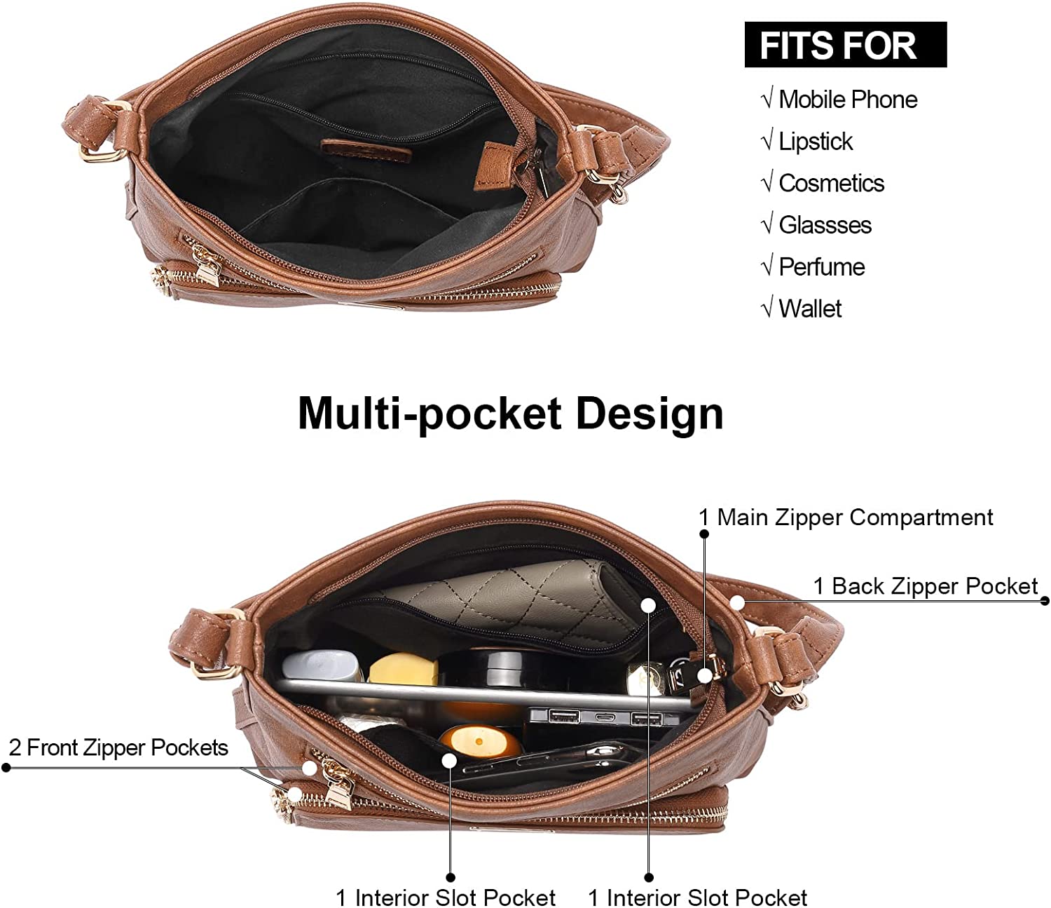 • 【Multi-pocket Design】: Women’s small shoulder purse has 1 Main Zipper Compartment, 2 Front Zipper Pockets, 1 Back Zipper Pocket, 1 Interior Slot Pocket, 1 Interior Zipper Pocket. Maintaining small wallets, mobile phones, keys, sunglasses and other daily small essentials is well organized.
