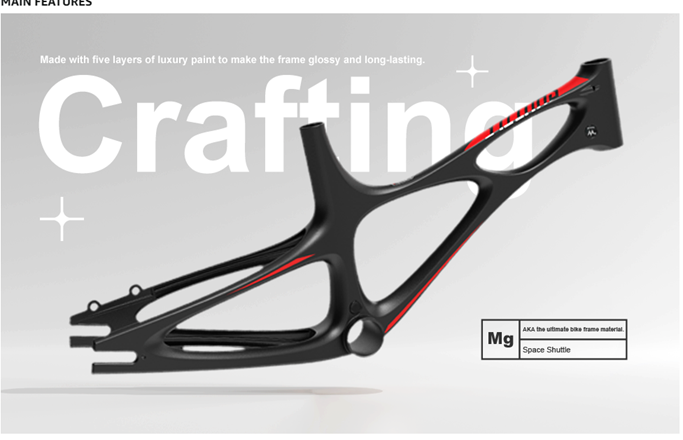 • ? WEIGHT SAVING - A perfect combination of strength and functionality. We reduces the bike's overall weight by using a lighter Mg-Al Alloy frame. Compared to a bike equipped with these high-performance parts, the magnesium bike is relatively more lightweight.