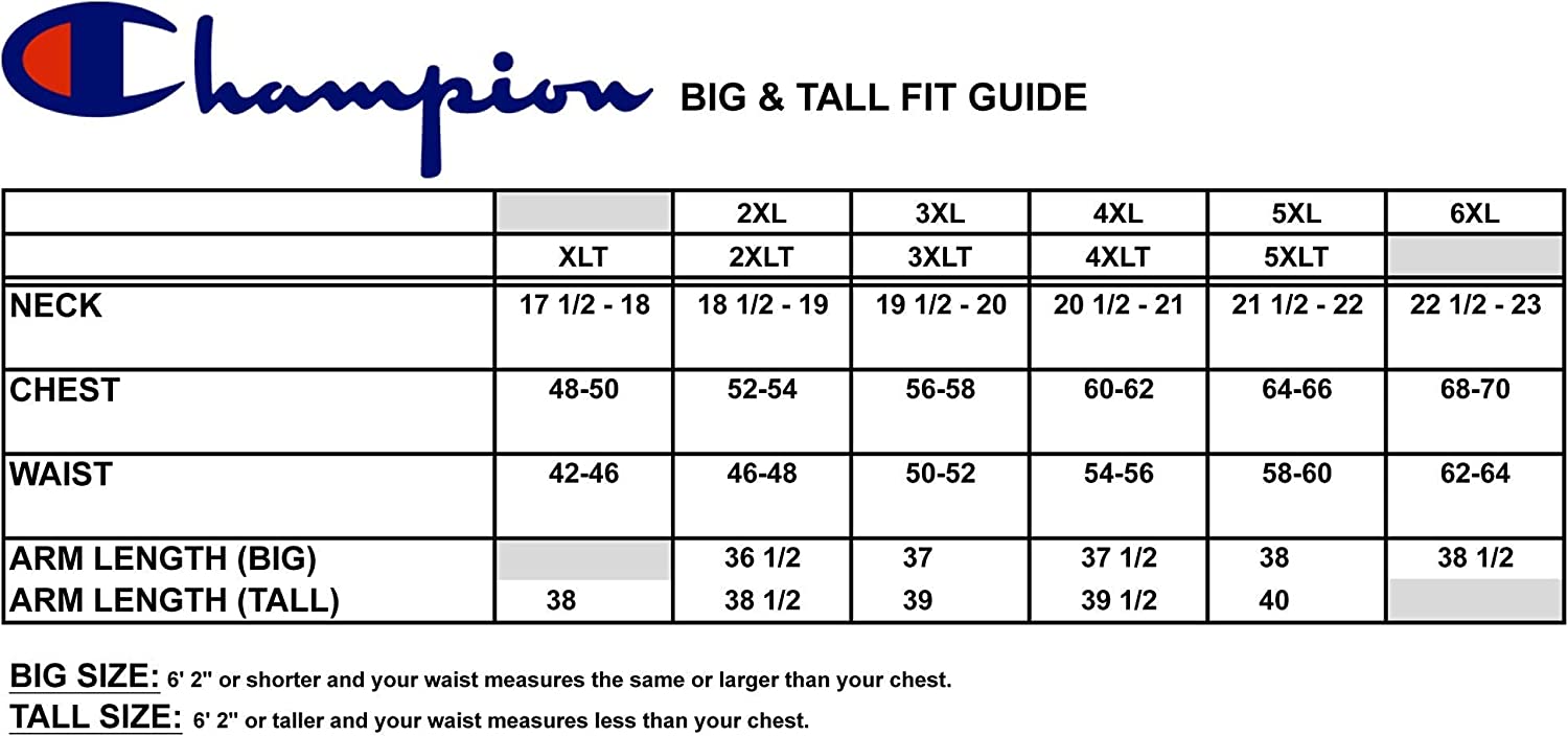 - Long Sleeve Shirt Sizes: This Champion mens shirt is available in X-Large, 2X, 3X, 4X, 5X, 6X and also available in longer sizes X-Large Tall, 2XT, 3XT & 4XT. So many size options to choose from!