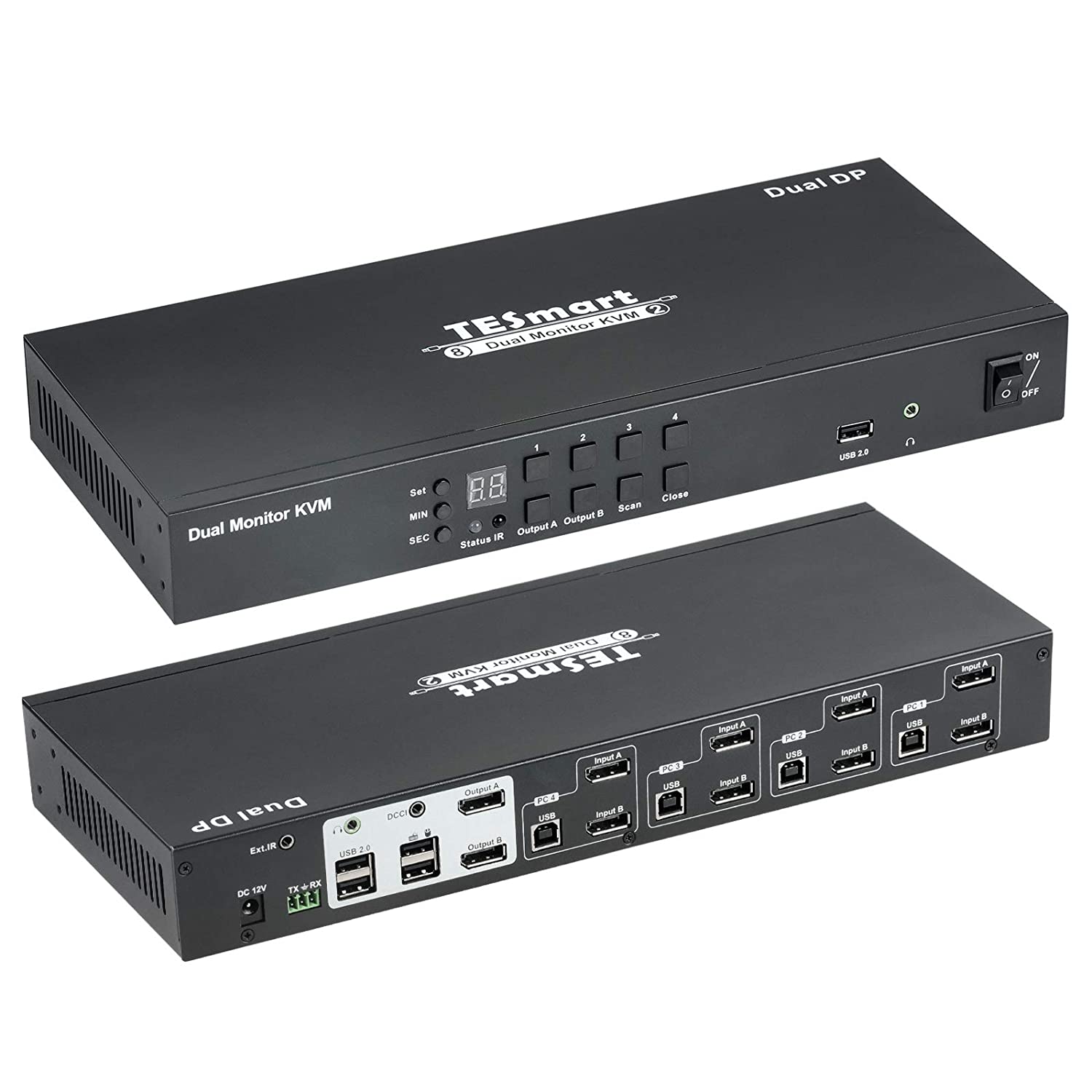 【TRIPLE MONITOR KVM SWITCH WITH 2 DISPLAY MODES】Hooking 4 desktops or Laptops to share one set of keyboard, mouse and 3 monitors for extended display or duplicate display or display different PCs on 3 monitors. Each computer needs to have 3 video connection to the triple monitor HDMI KVM.