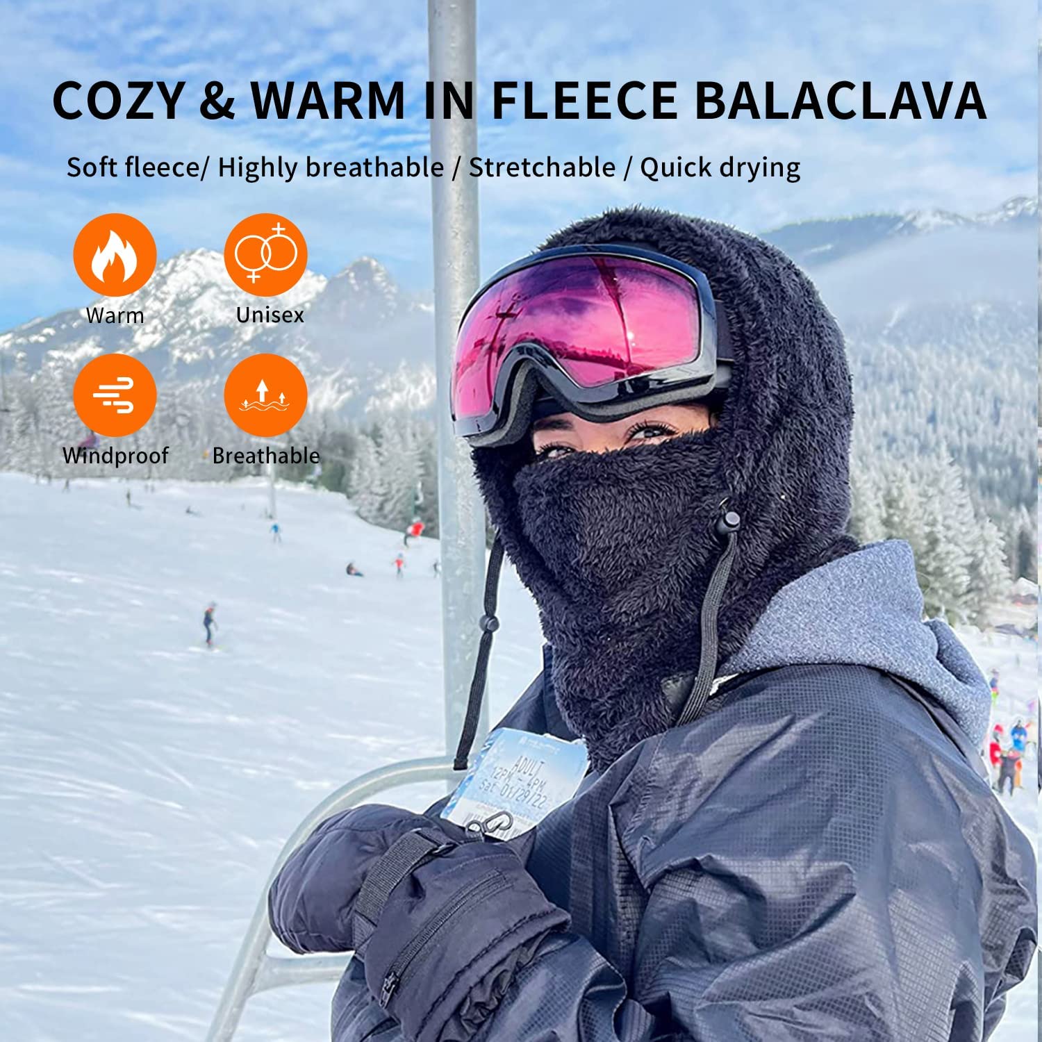 This balaclava is equipped with 2 black knit strings to easily adjust a half face or full face cover.