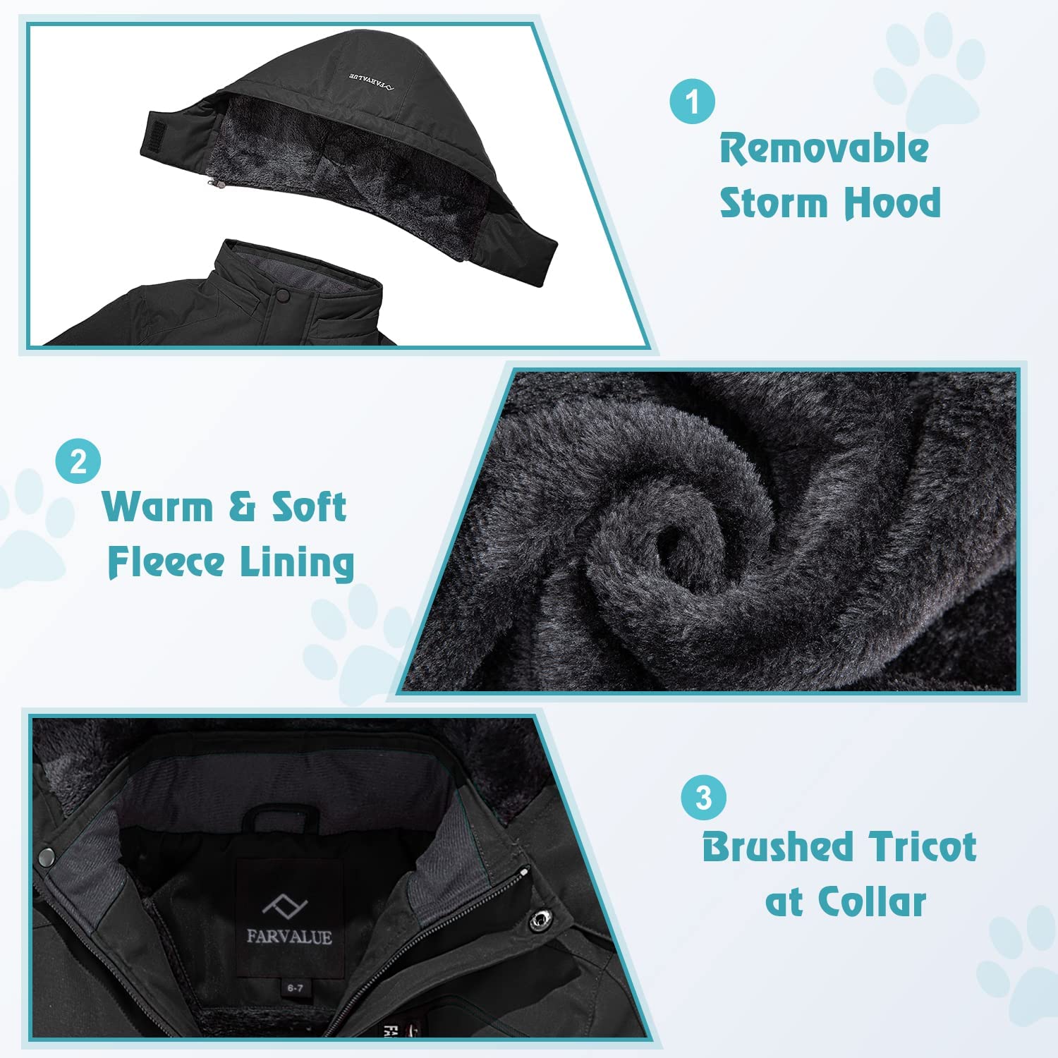 • Warm Winter Jacket: (1) Soft fleece lining is thick and smooth, can efficiently deal with rain or snow. (2) Insulated cotton padding gives your kids toasty warmth.