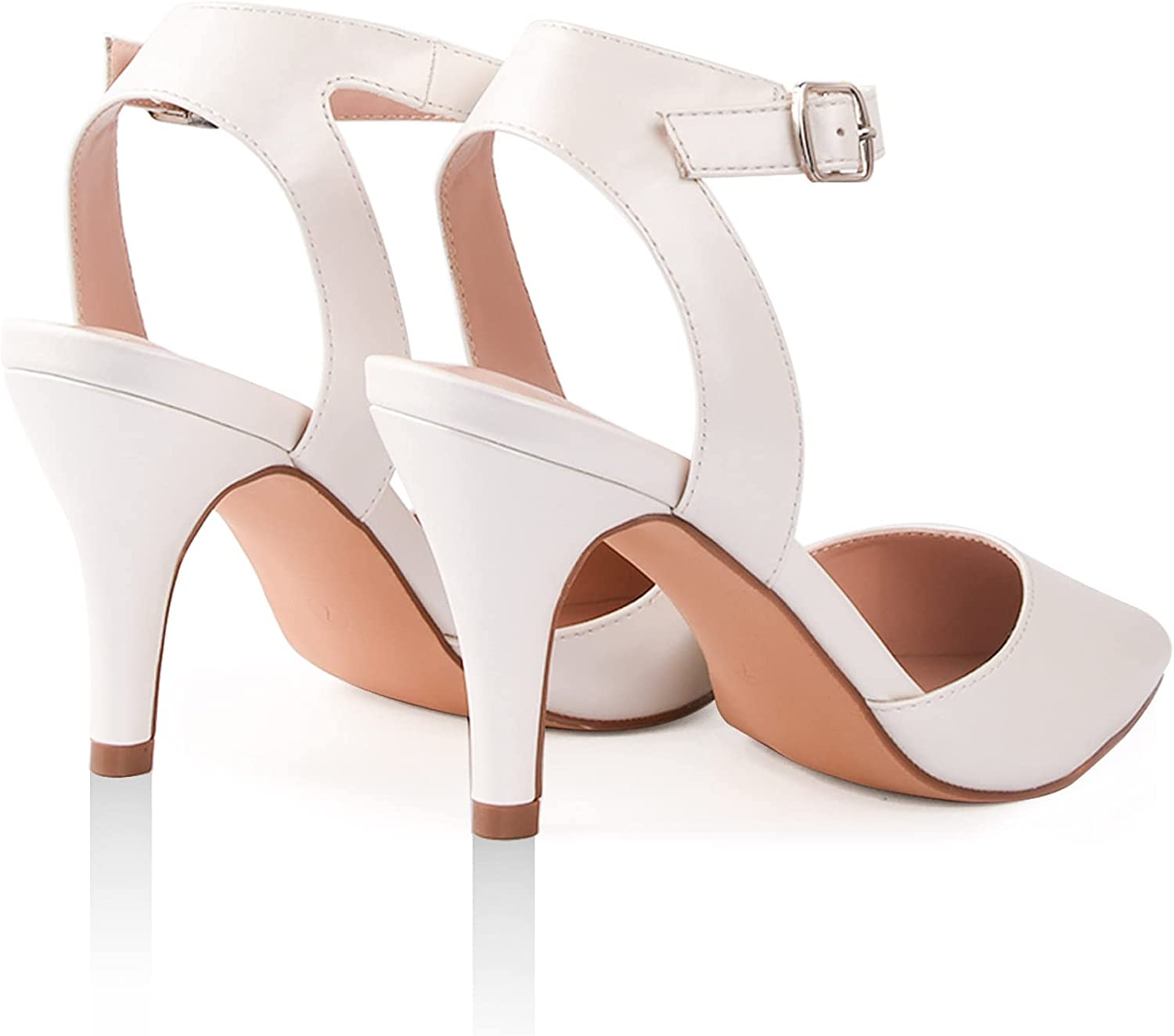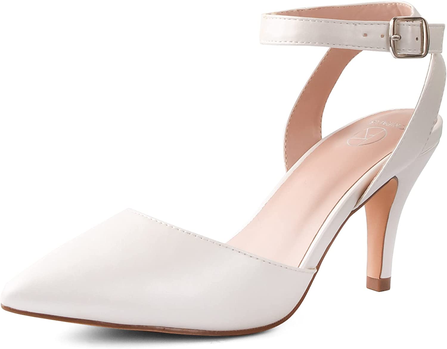 ORIPLALLA Heels for Women Dress Shoes Low Heel Ankle Strap Slingback D'Orsay Non Slip Closed Toe Pumps Wedding Bride