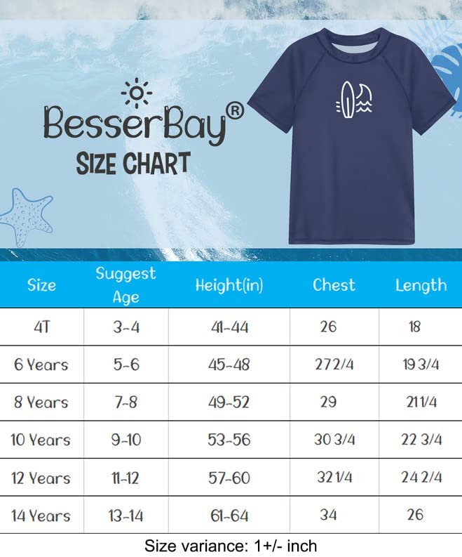 ? Suitable occasions - Besserbay UV swim shirt is a perfect gift for your boy to spent exploring in the sun! Perfect for the swimming class, beach travel, summer camp, water park and anywhere sun protection is needed.